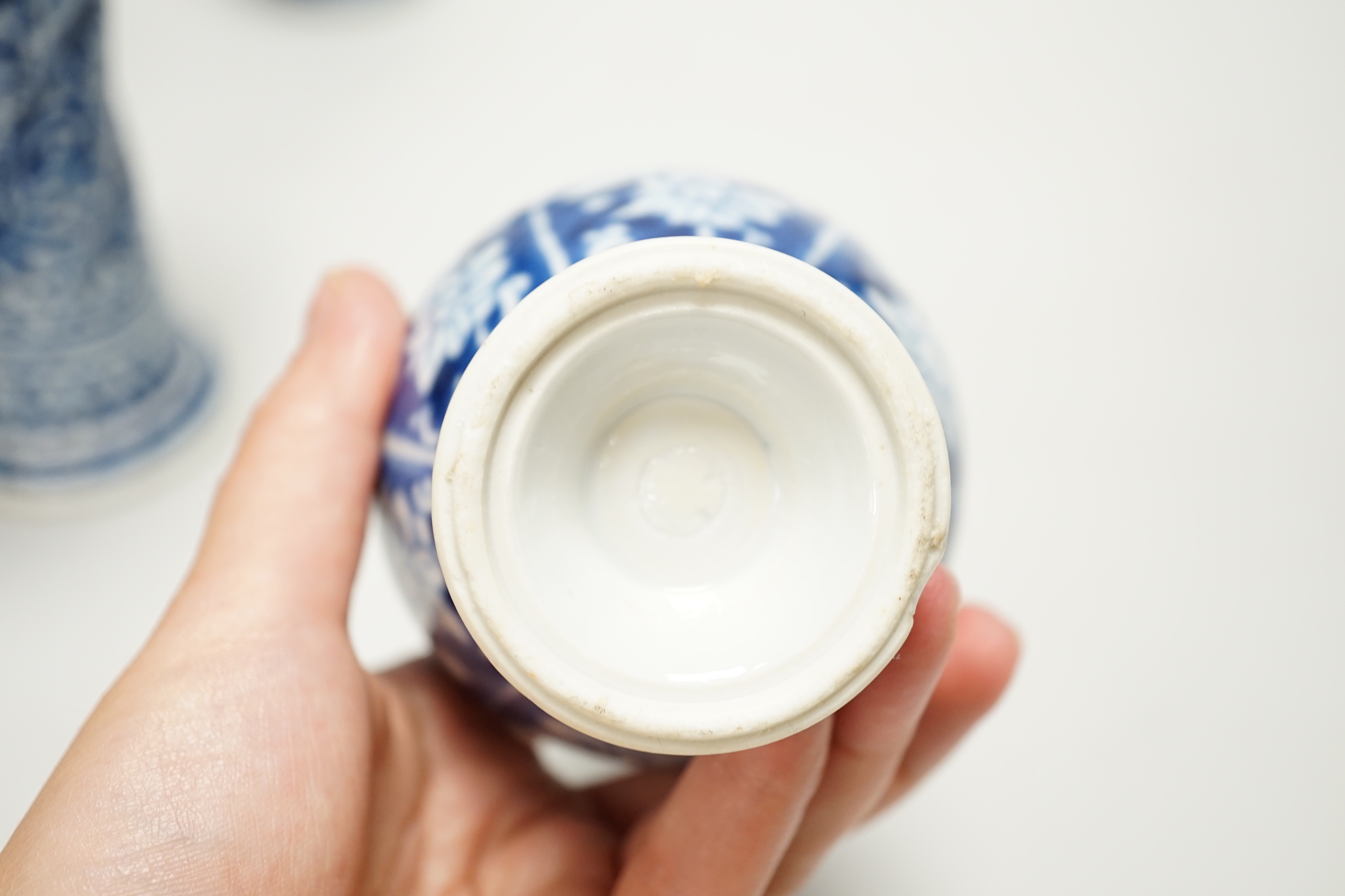 Four Chinese Kangxi period blue and white small vases, tallest 16cm high