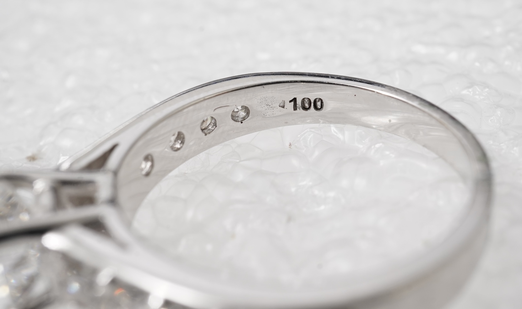 Accompanied by HRD report no. 170001461587, stating that the central diamond weighing 1.00 carats is E colour, SI1 clarity, slight fluorescence