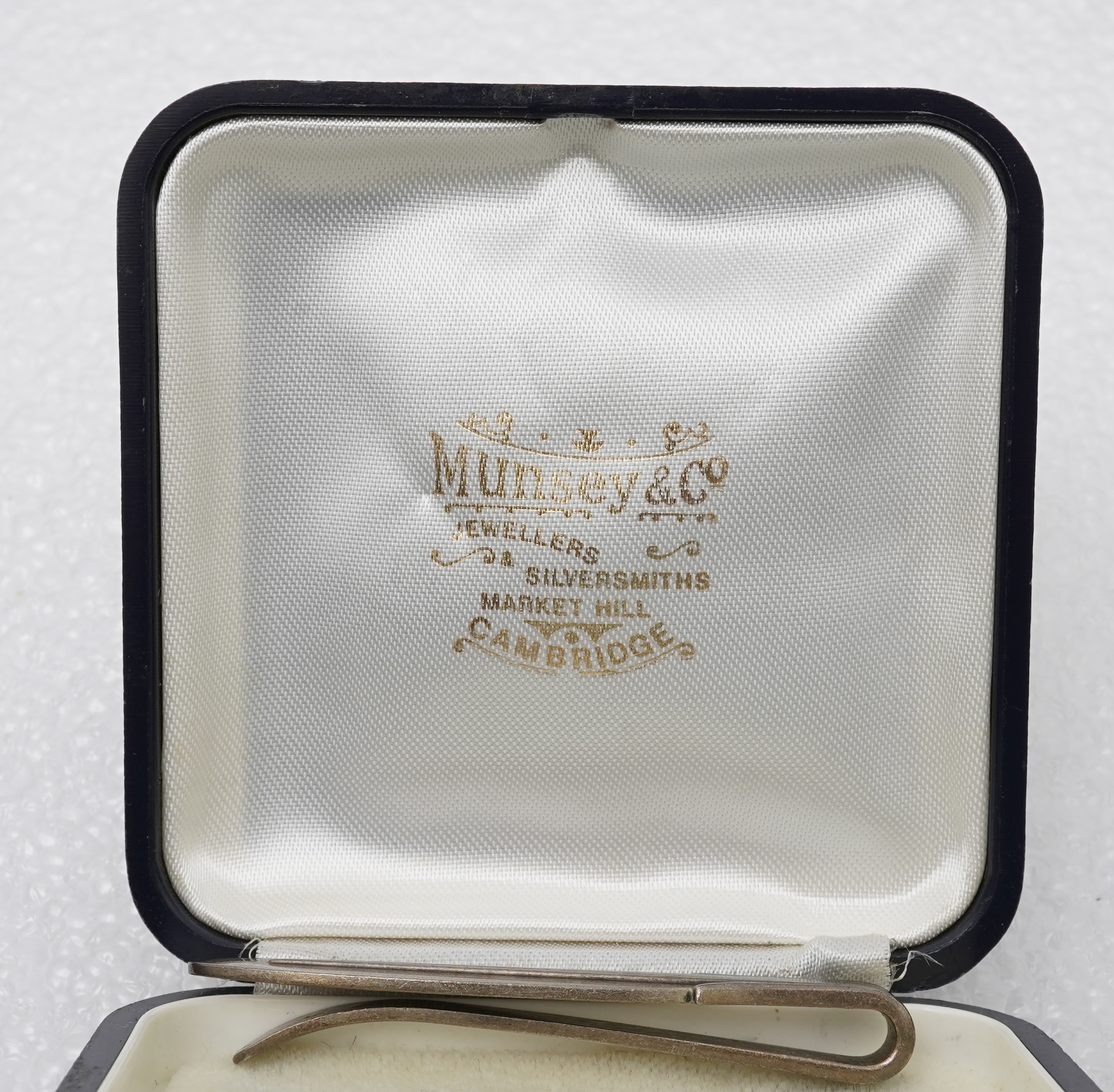 Lot 906 , A 1960'sGeorg Jensen silver tie clip, design no. 63, 53mm, together with a stylish sterling necklace and two silver curb link bracelets.
