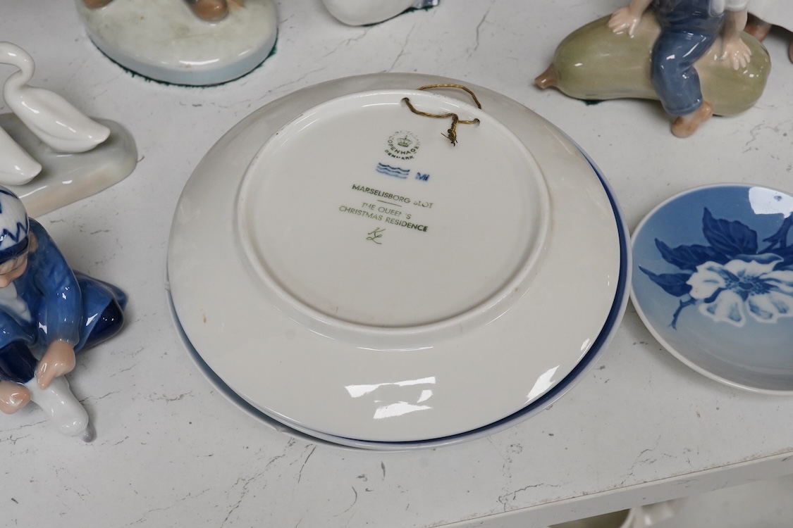 A collection of Royal Copenhagen and Bing and Grondahl figures and plates, tallest 19cm