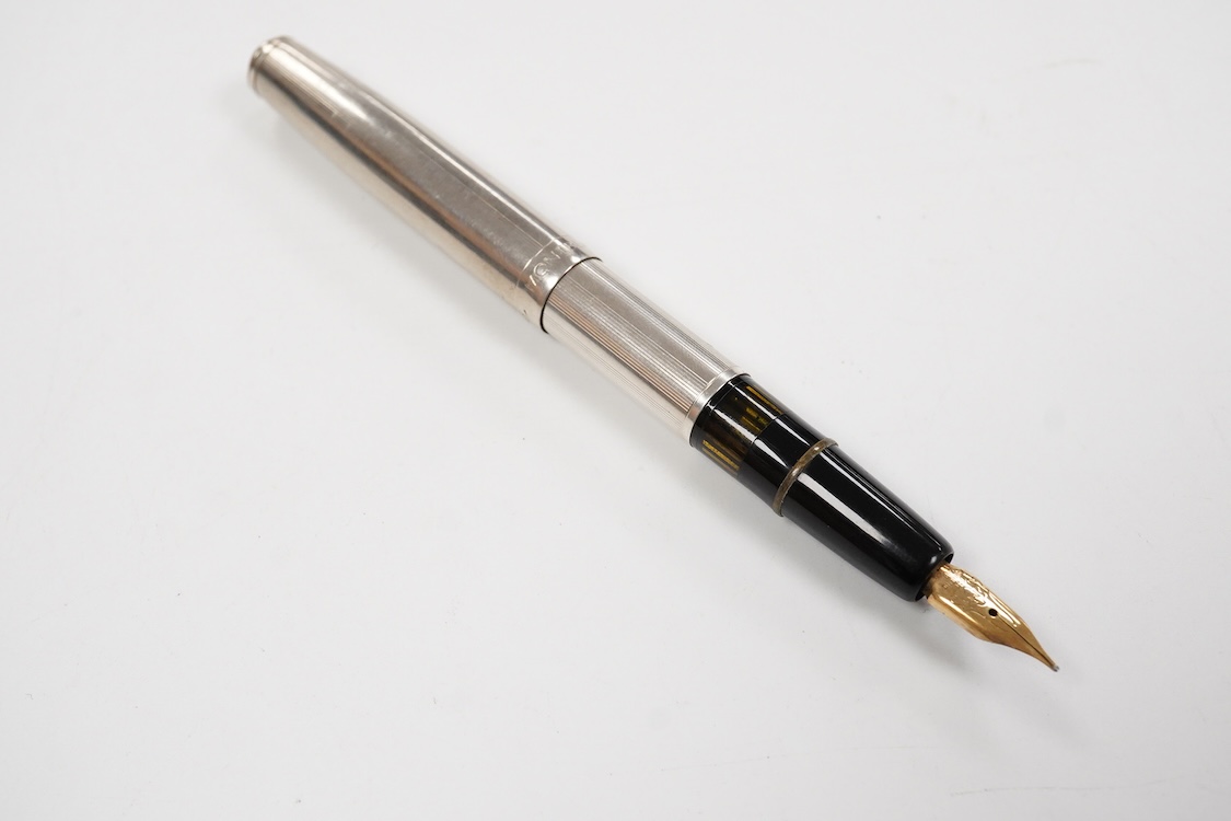 A Mont Blanc 742-N white metal fountain pen 14ct. winged Mont Blanc nib (no silver marks)