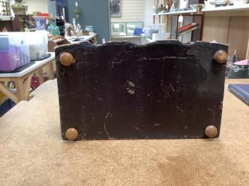 Rear with two cracks to veneer, one horizontal top-left and one v-shape top-right, also some small repairs here, see 21st image; crack to ivory at right hinge; zinc linings worn.