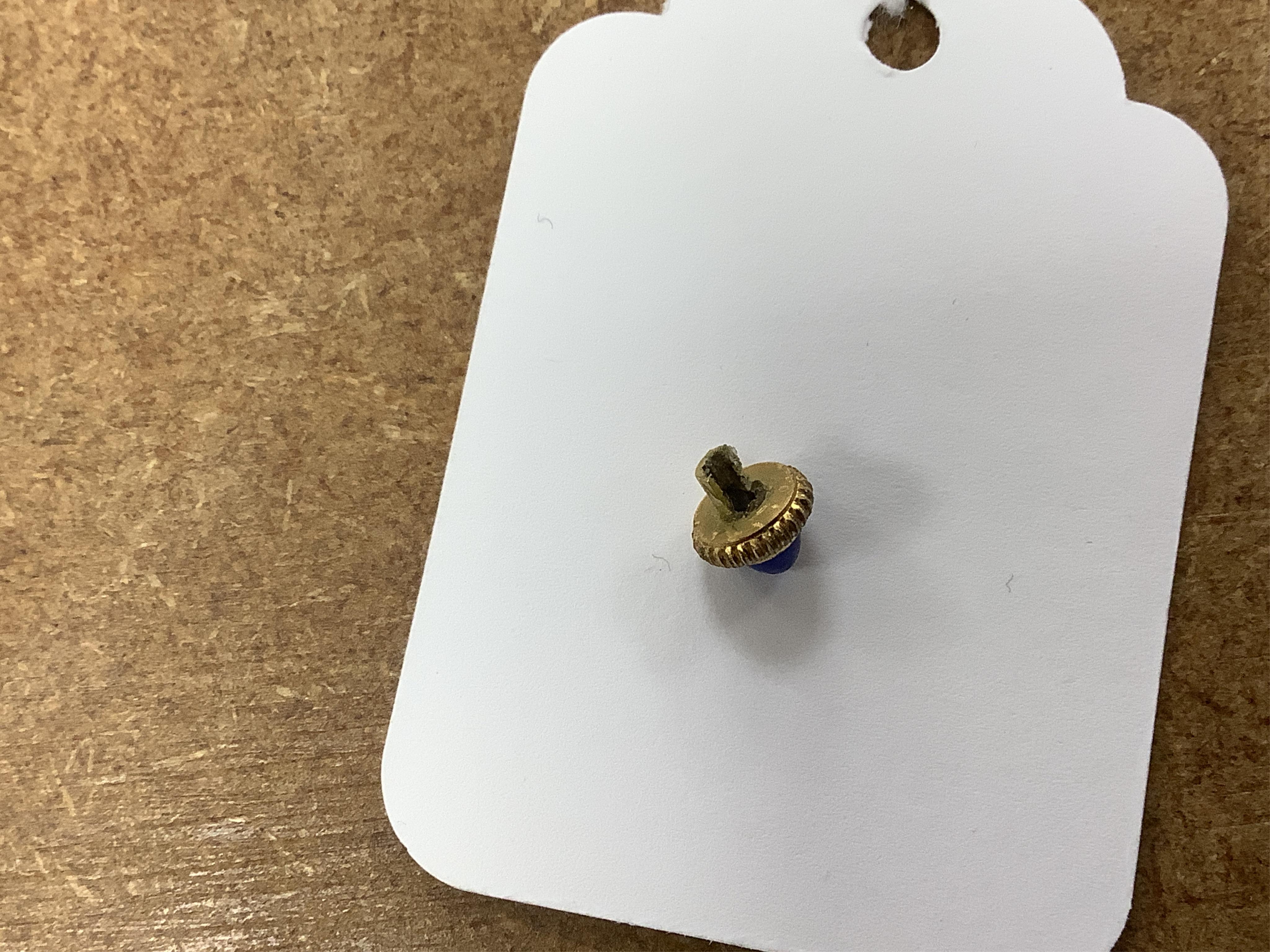 Two small chips to blue enamel surround, one of which see image 9; adjusting knob damaged and incomplete but does manage to adjust; strut-action working; has been set going and has worked over some eight hours, although not guaranteed. Box used but fair.
