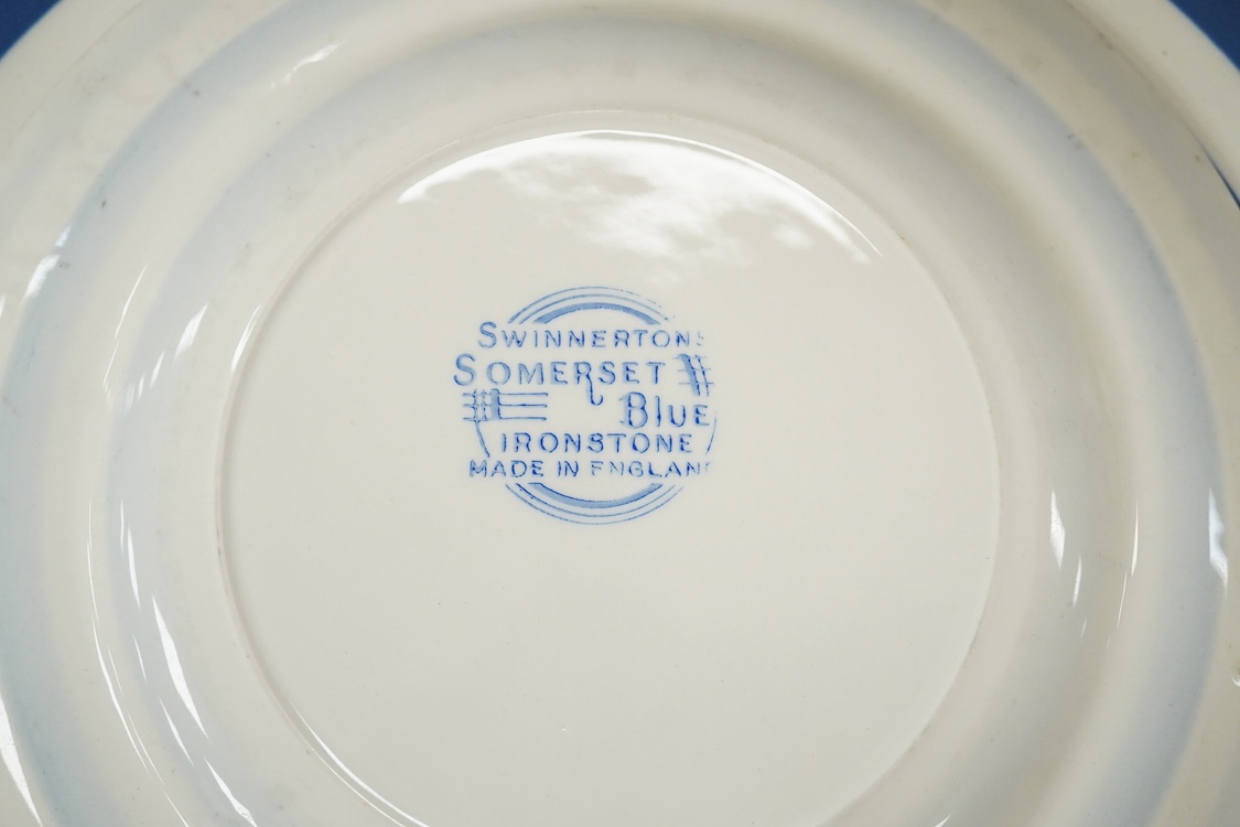 A quantity of assorted 'Cornish' blue and white to include Swinnerton Somerset Blue Ironstone and Staffordshire Chef ware, largest 26cm in diameter