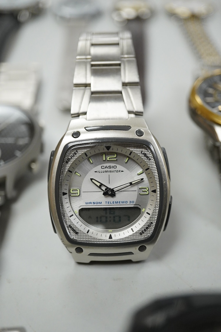 A collection of twenty seven assorted mainly gentleman's wrist watches, including eight Citizen watches, four Casio, a steel Vertex, Hamilton, Tissot, etc.