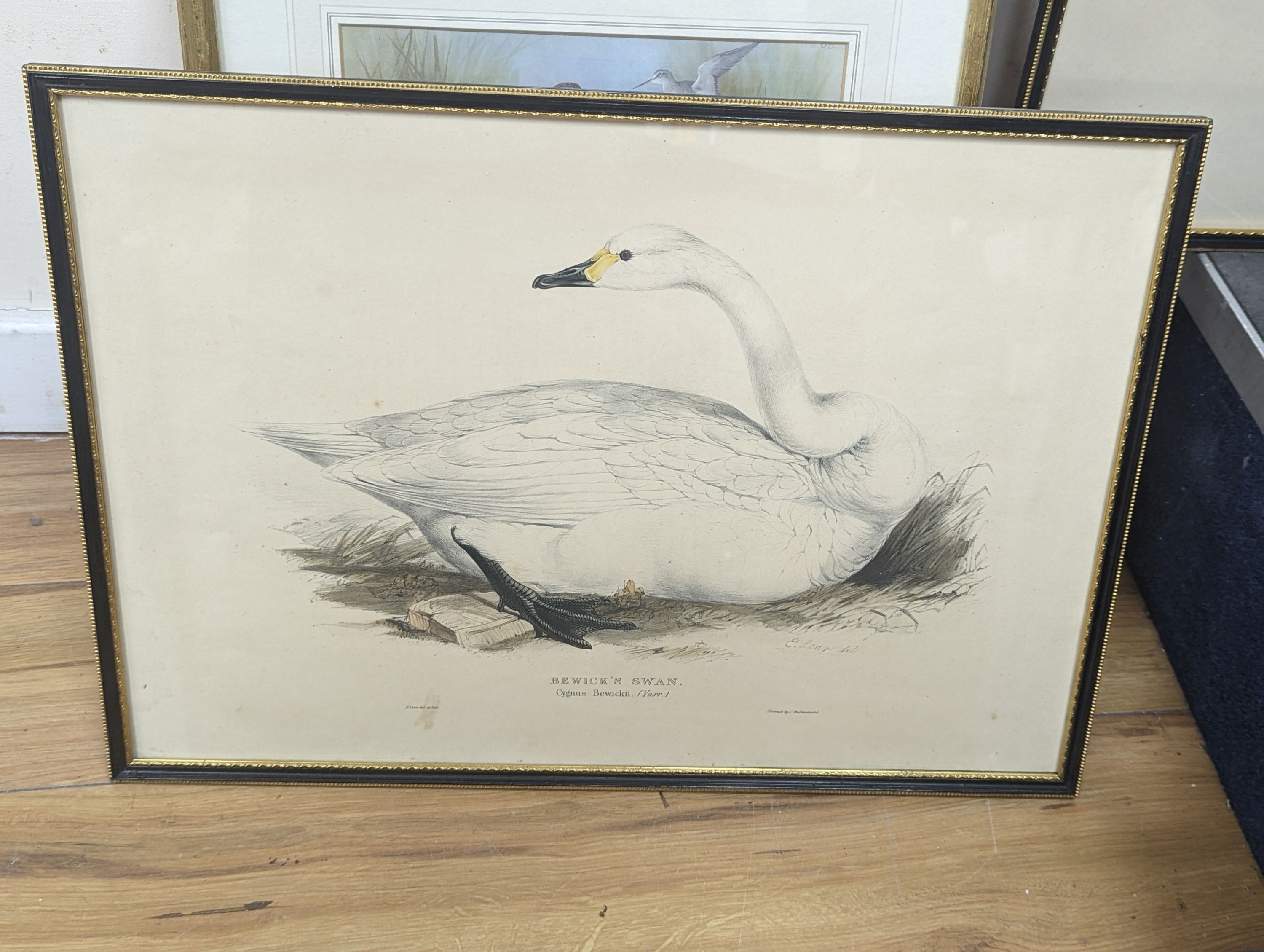 A group of assorted ornithological prints including three lithographs after Edward Lear, largest 52 x 36cm