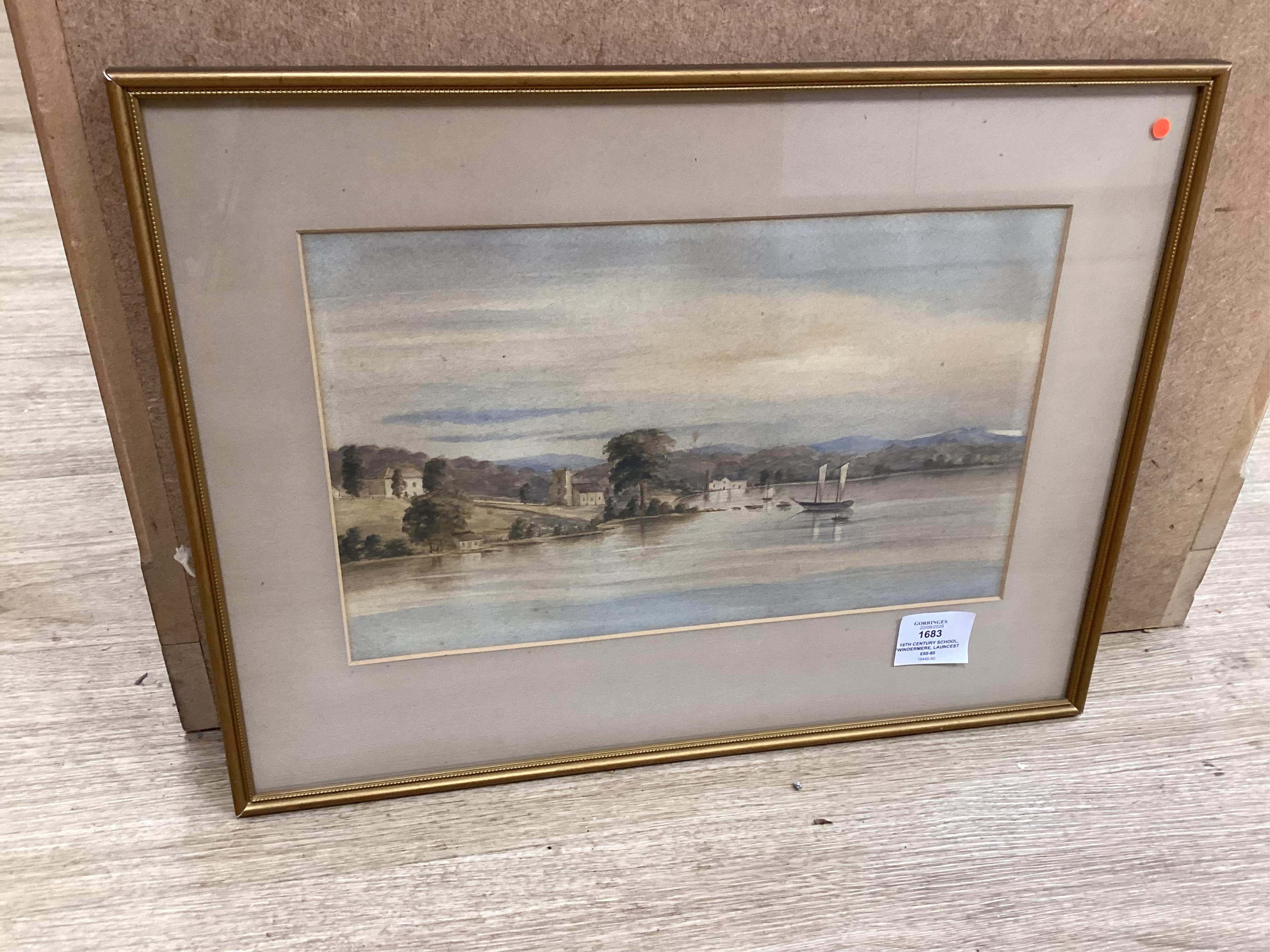 Lot 1683 , 19th century School, ‘Windermere, Launceston, Tasmania’, watercolour together with another Continental watercolour, Bridge over water, largest 20 x 32cm