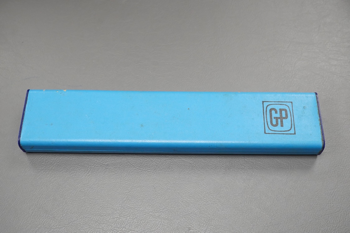 A gentleman's 18ct Girard-Perregaux manual wristwatch, oval brushed gilt dial with raised hour baton marks, seventeen jewels movement, signed, on an associated gilt metal articulated bracelet, in original case.