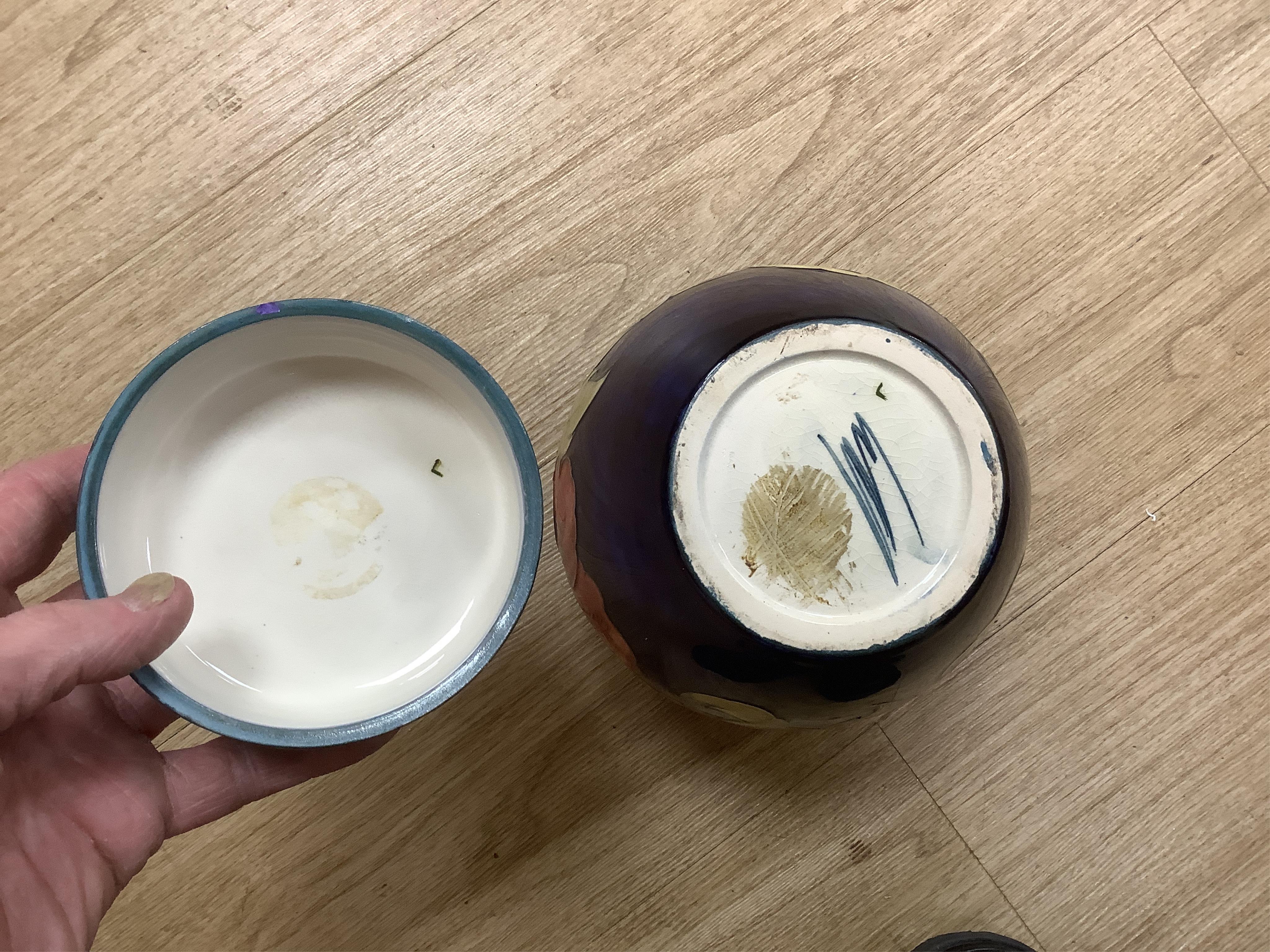 Leaf and Berries vase good; underside shown image 8. Ochre Poppy good, image 9. Clematis good, image 10. Hibiscus jar good, cover small overpainted chip to underside of rim, image 11.