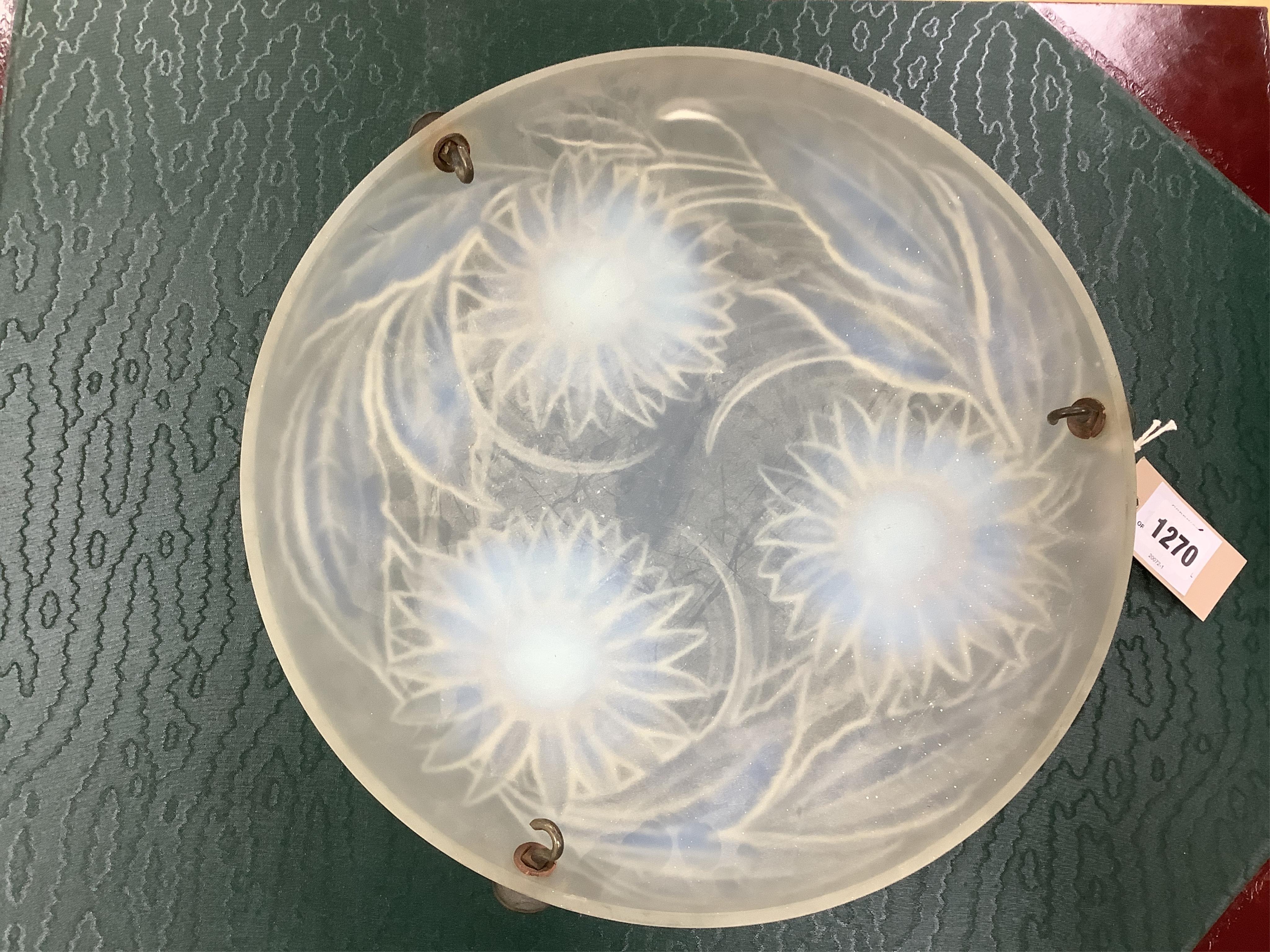 Lot 1270 , A Lalique-style opalescent glass ceiling shade decorated with three sunflowers, 34cm in diameter