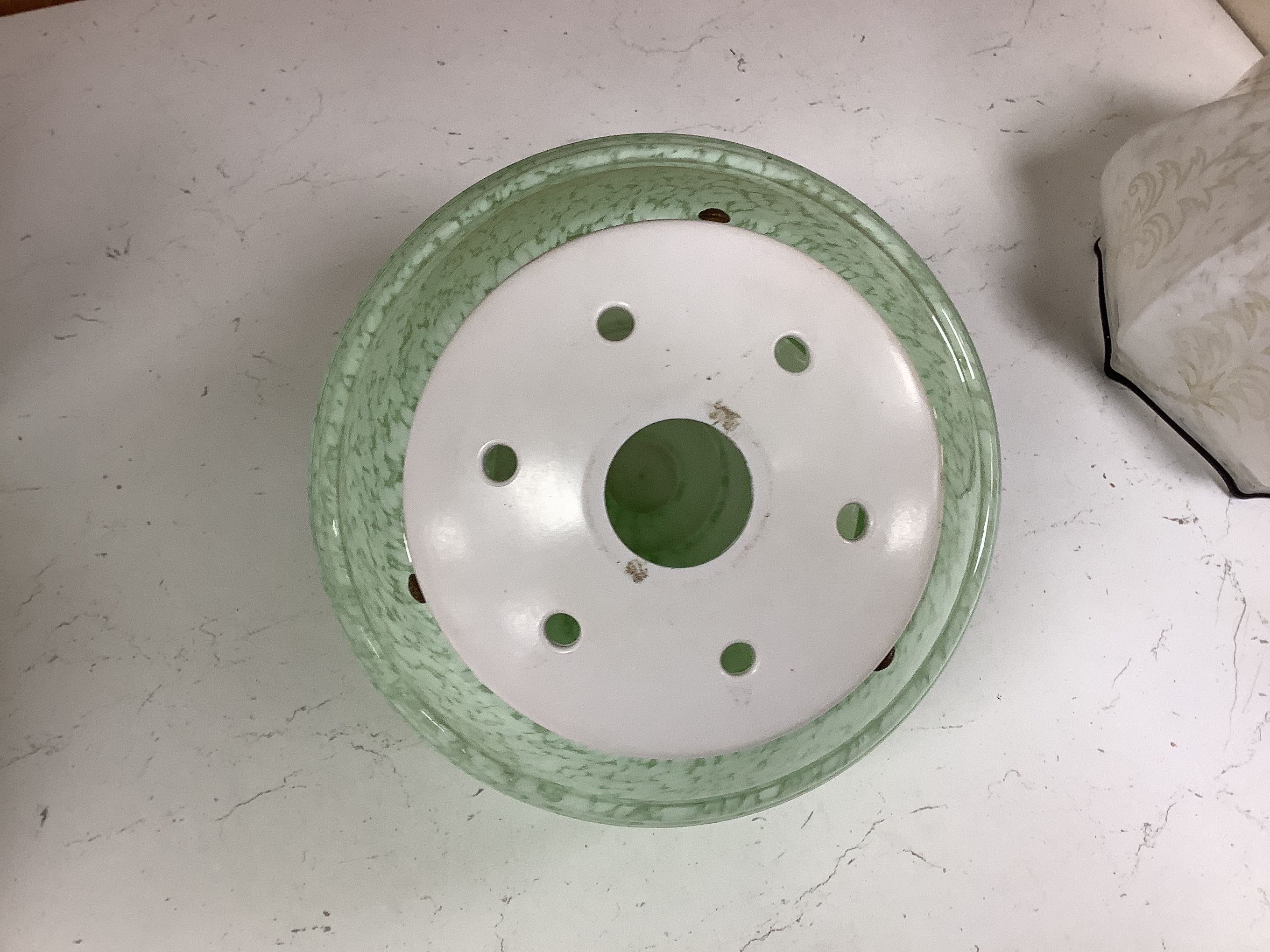 Lot 1167 , Four Art Deco glass shades to include two marbled green examples with gilt decoration, largest 20cm