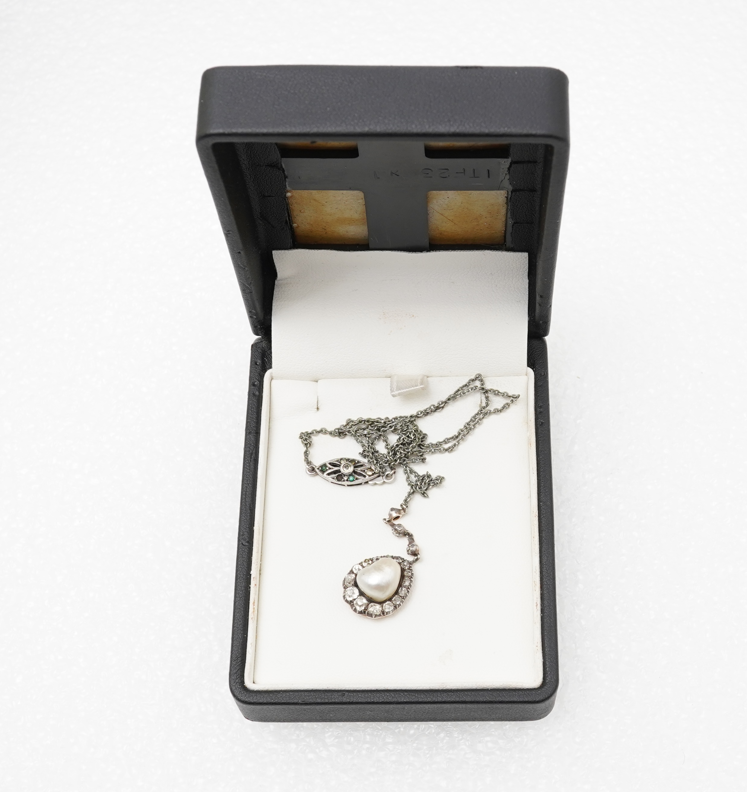 Lot 408 , A pearl and diamond pendant, circa 1900