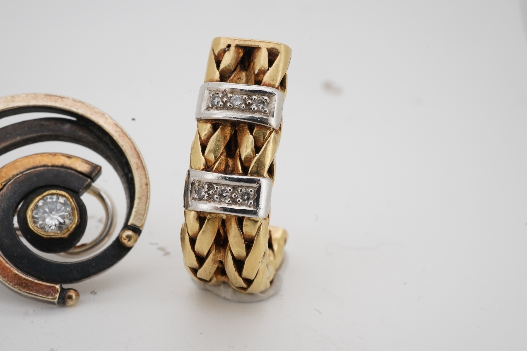 Lot 682 , A pair of gold, onyx and diamond earrings, 1970s