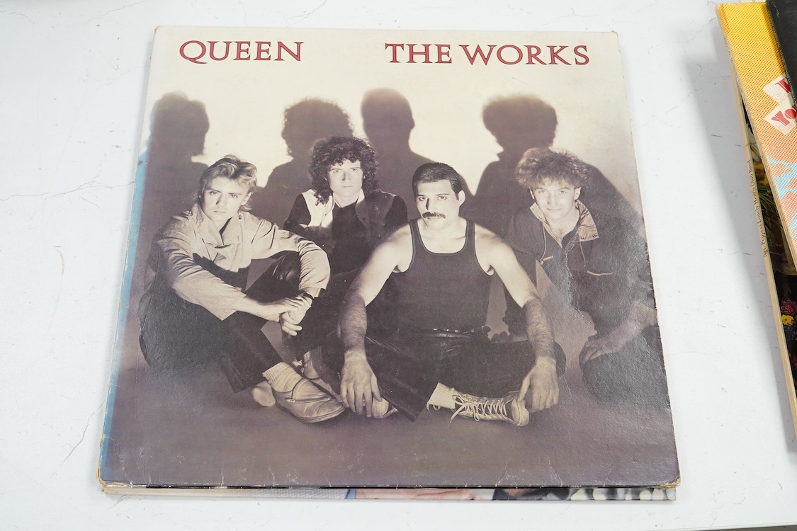Fourteen LP record albums including eleven The Beatles and related; Sgt. Pepper’s Lonely Hearts Club Band (plus an additional three others), The Beatles at the Hollywood Bowl, Magical Mystery Tour, Revolver, etc., plus two albums by Queen and another