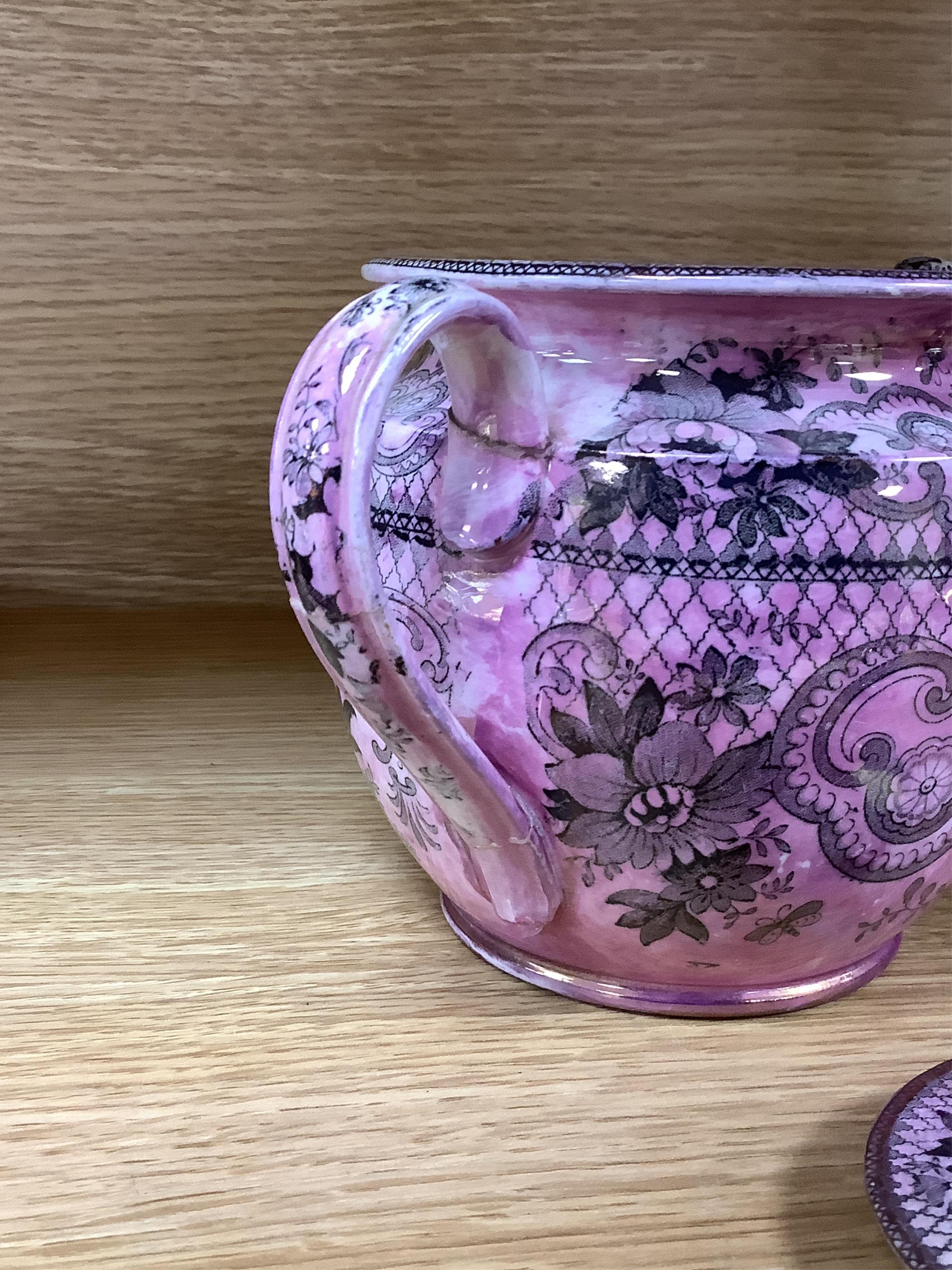 Lot 334 , A Lowestoft Dolls House-pattern sparrow beak cream jug, a pair of early 19th century floral plates, two Rockingham plates, Davenport teapot, etc. (8)