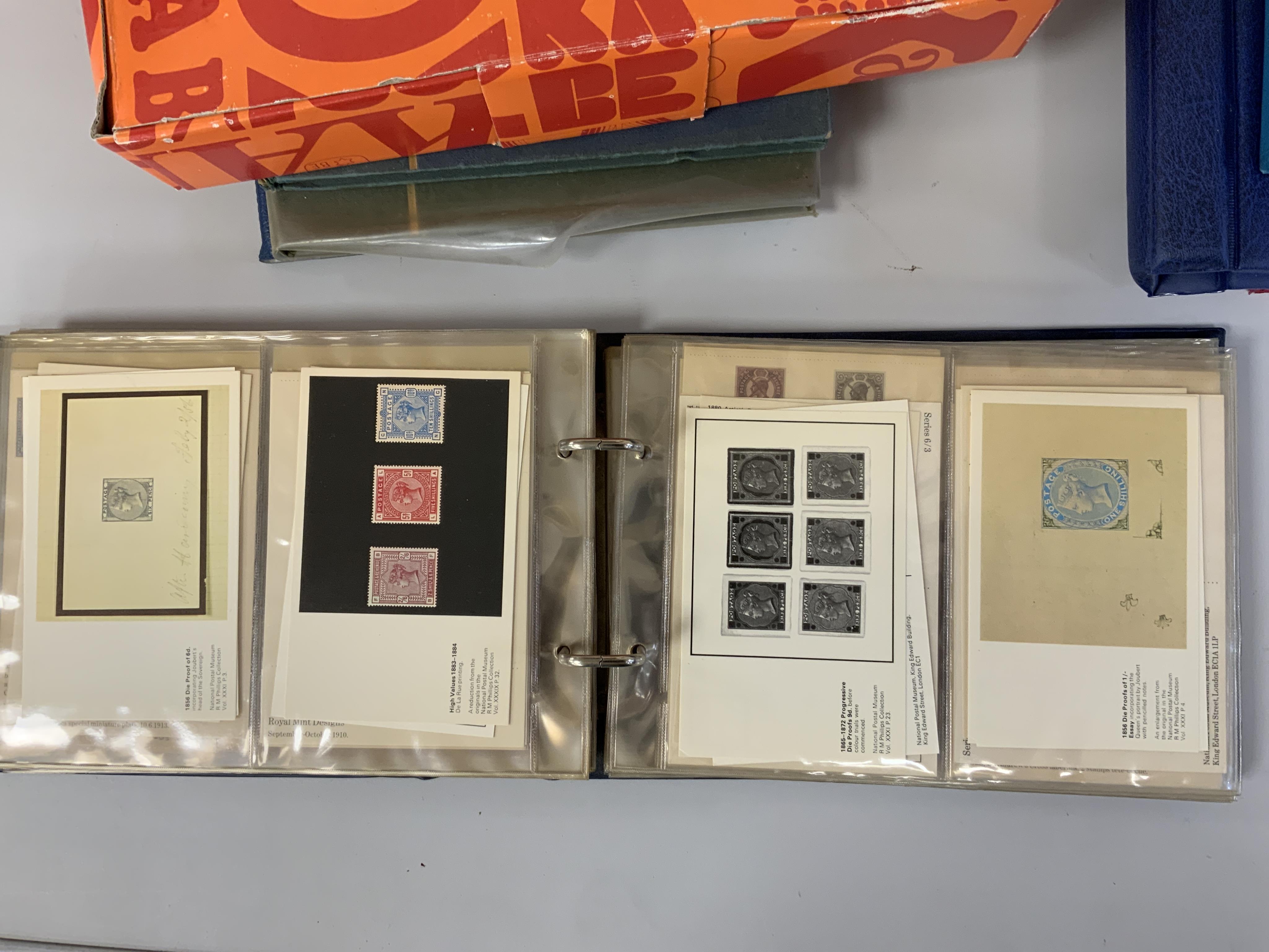 Six albums of Great Britain stamps, including a selection of Victoria stamps, two George V British Empire Exhibition 1924 stamps, an empty Ka-Be Stamp Album published by Volkhardt & Co., an album of stamp postcards, etc.