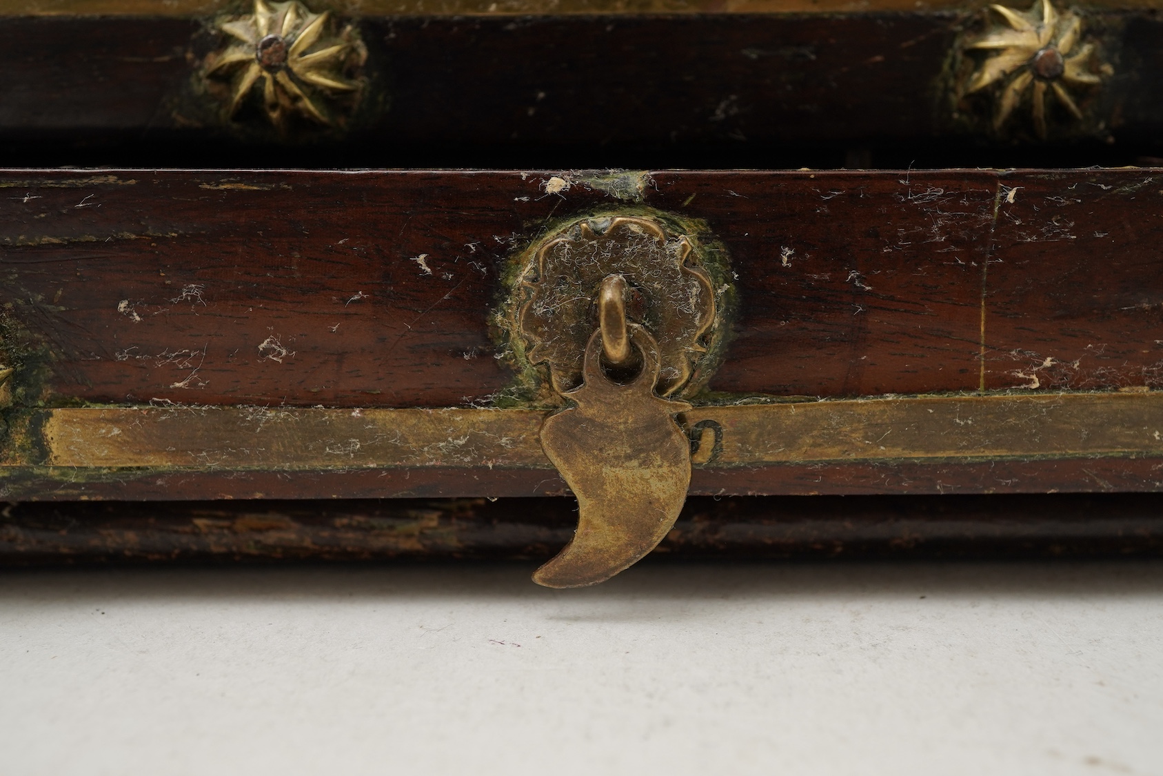 A Batavia or Ceylonese rosewood and brass mounted Betel nut box, 18th century