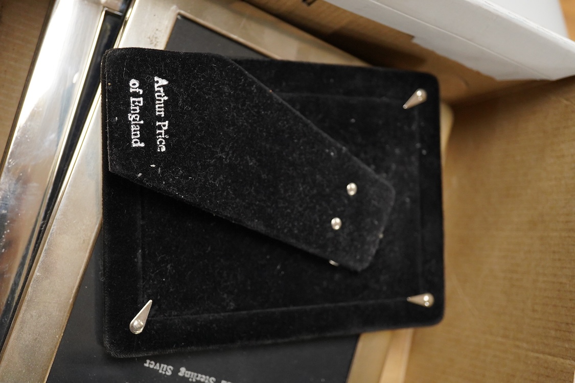 A garniture of 19th century silver plated Corinthian column candelabra, comprising a pair of two branch, three light candelabra and matching four branch, five light candelabrum, with detachable acanthus leaf capped scroll arms and beaded decoration on stepped square bases, all by William Hutton & Sons, candelabrum height 60.5cm.