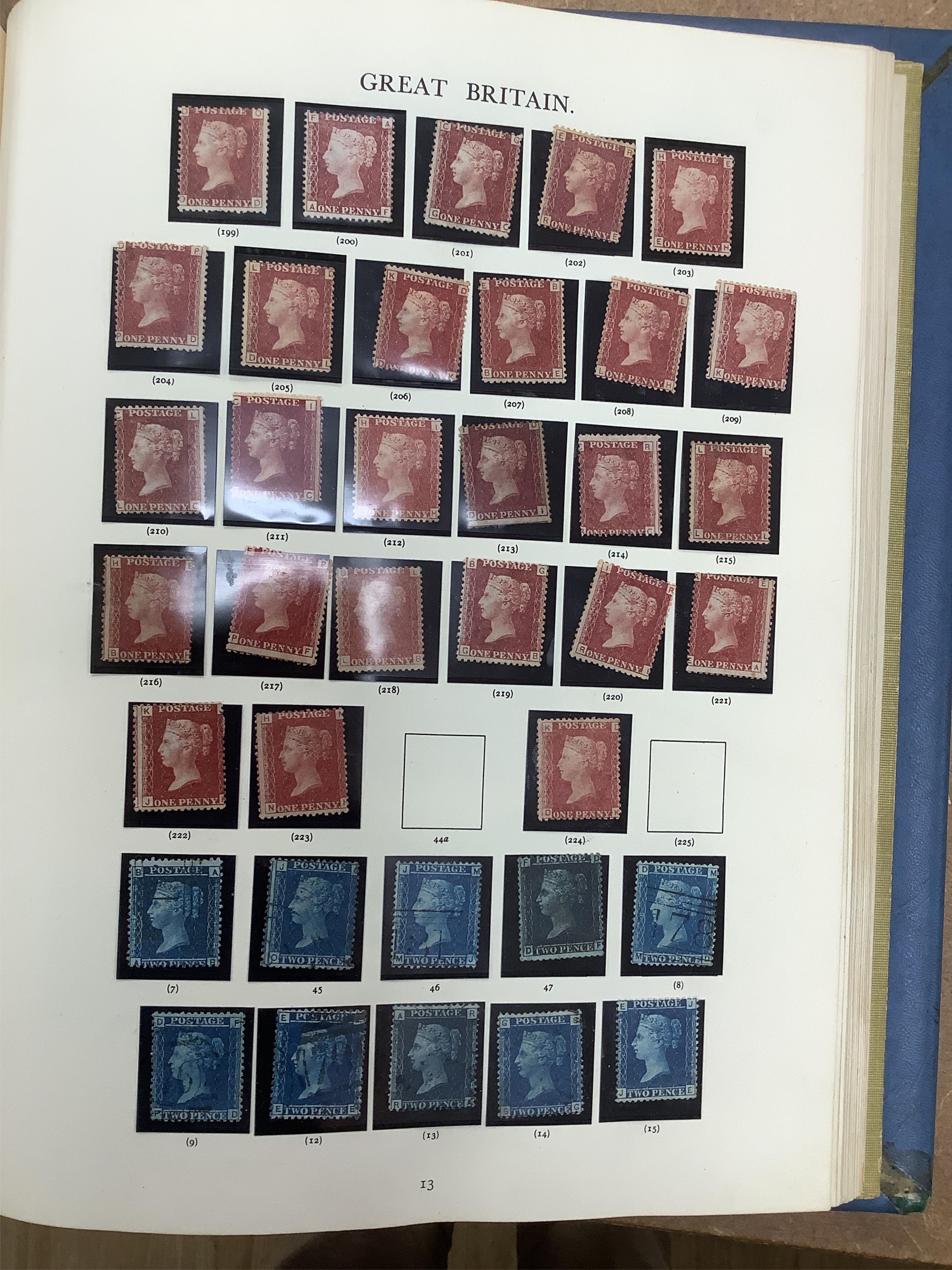GB album pages 9, 11 and 13 largely full and uncancelled although page 13 Two Pence blues are cancelled. Plate 225 not present. (Images 12, 13 and 14). Page 15, plate 9 not present, image 15. Pages 17 to 29 a little more than half-full, images 16 to 22. Page 47 see image 23, 24 and 25; eight on this page uncancelled. Page 3 Penny Black, third from left shown in image 26.