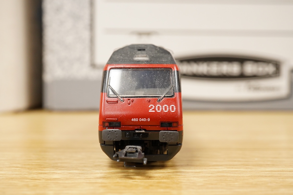 Lot 255 , A collection of Marklin HO gauge Swiss railway including three SBB CFF FFS Bo-Bo locomotives; two pantograph electric locomotives and a diesel, three bogie coaches, nine freight wagons, an unconstructed Wills three arch