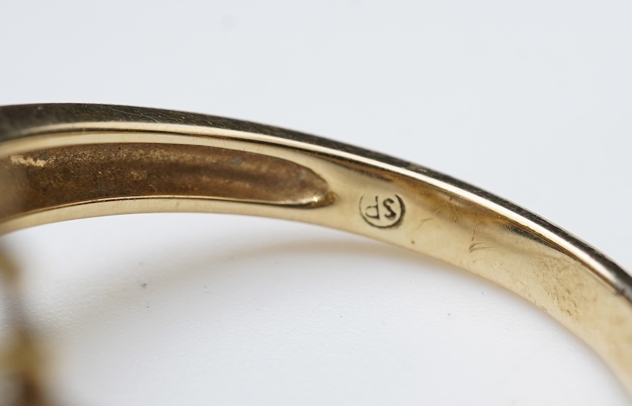 Attractive and in good condition, only minor wear, aquamarines quite pale but well-matched and pretty. Bracelet well-articulated, clasp secure. Ring cluster approximately 13.5mm in total.
