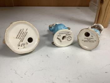Lot 1359 , Nine Beswick Beatrix Potter figures, some stamped F. Warne & Co , largest 17cm high