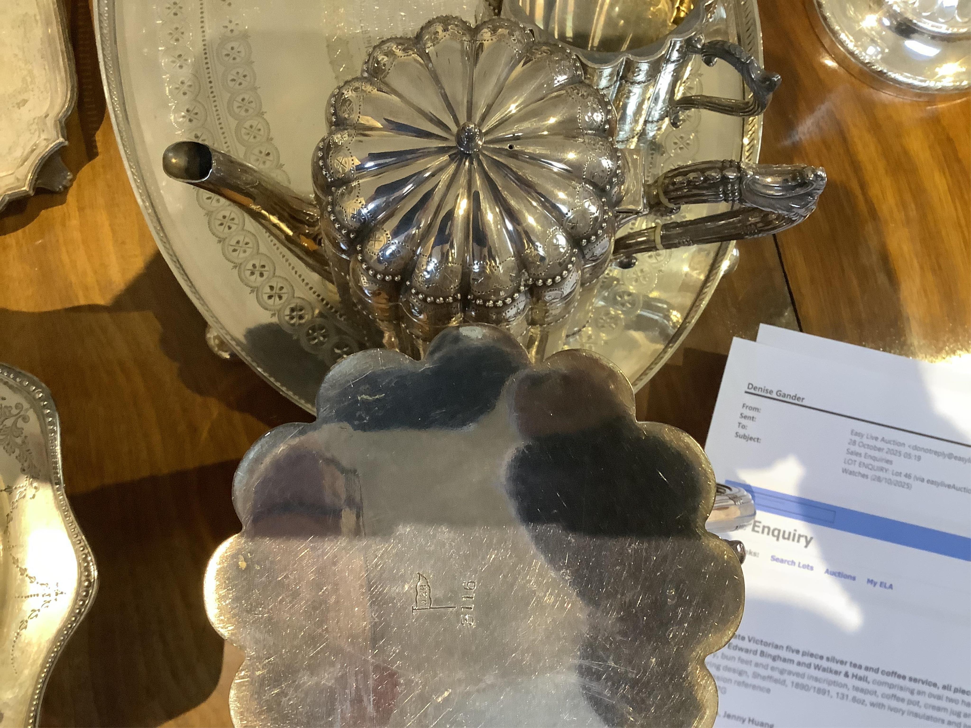Lot 46 , A late Victorian five piece silver tea and coffee service, all pieces with makers marks for John Edward Bingham and Walker & Hall
