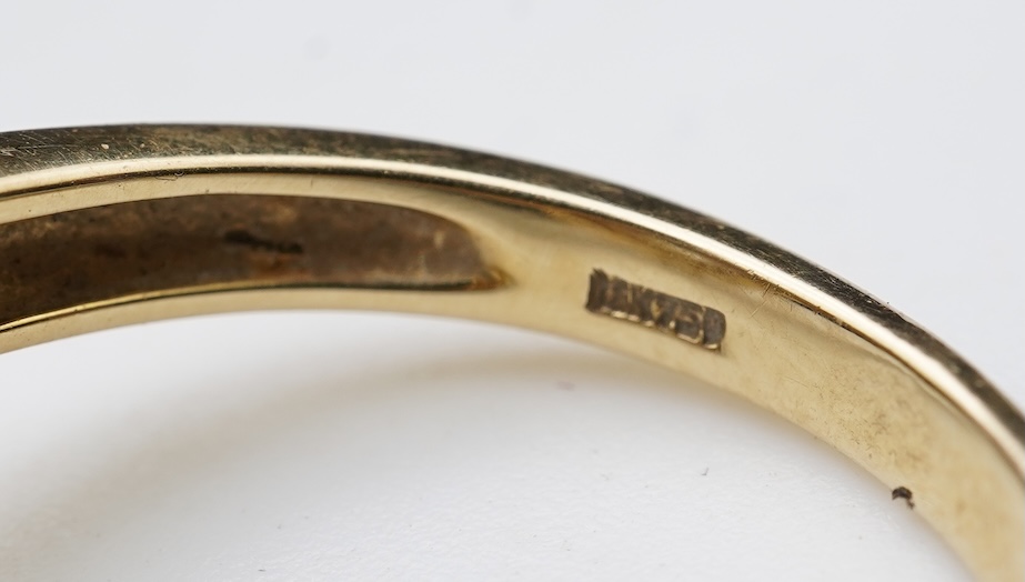 A set of aquamarine jewels, comprising: a bracelet, collet-set with oval aquamarines, spaced by crossed links accented with single-cut diamonds, mounted in gold, length 17cm, stamped 18K 750; a pear-shaped aquamarine and diamond pendant mounted in gold, length 2.9cm, stamped 750; and an aquamarine and diamond cluster ring, mounted in gold, size O, stamped 18CT, combined gross weight approximately 20 grams