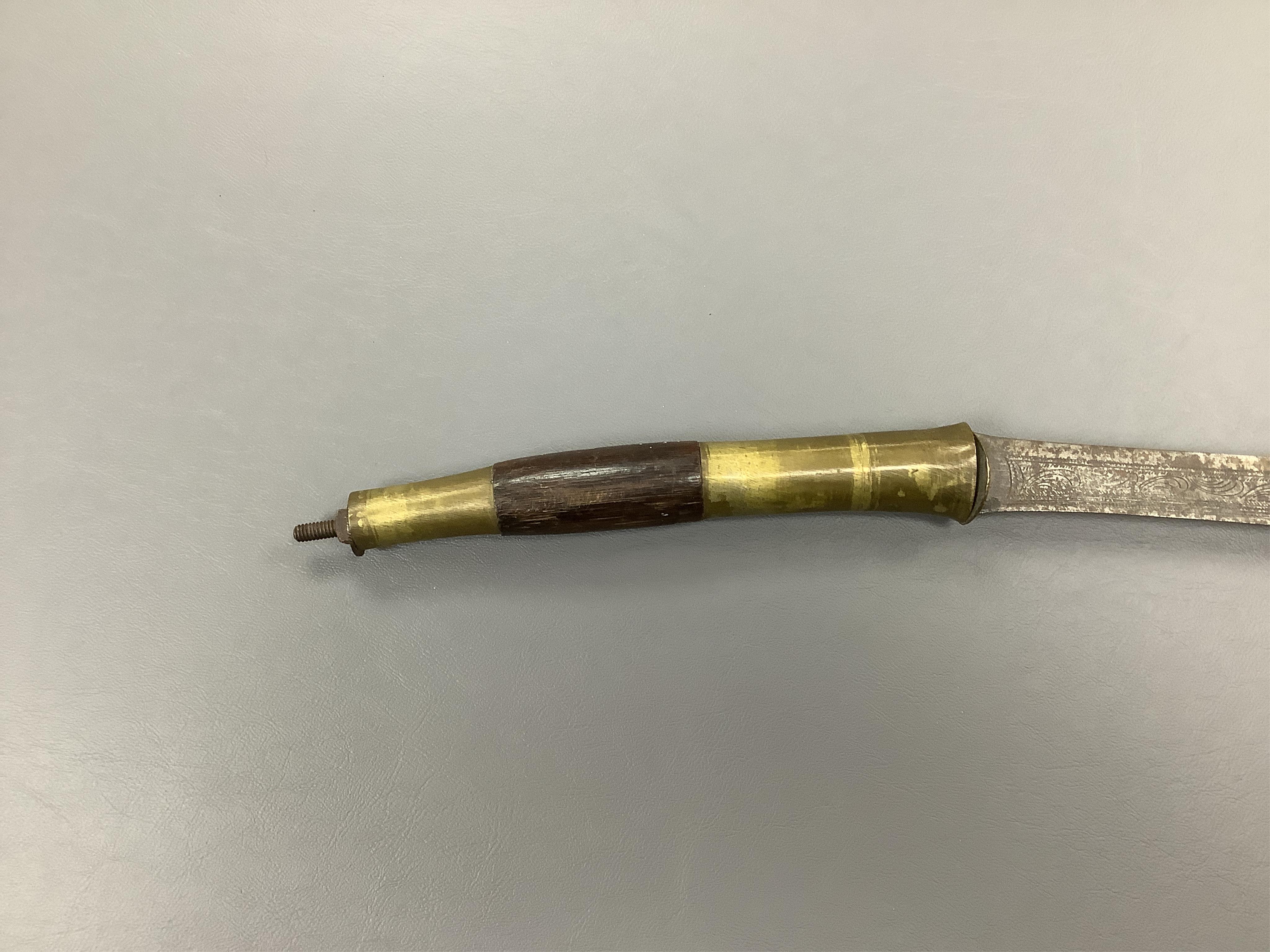 Lot 255 , Eighteen assorted world weapons comprising a silver jambya (pommel missing), a knobkerry, a dha, two kris (one with handle missing), a lohar, three kukris, a djambok, a Chinese trousse, a chora, a flyssa, five others and