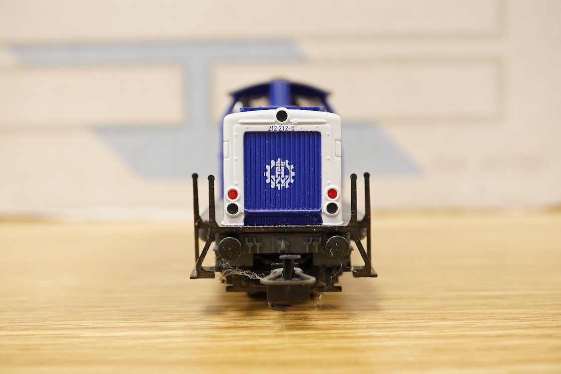 A collection of Marklin HO gauge Swiss railway including three SBB CFF FFS Bo-Bo locomotives; two pantograph electric locomotives and a diesel, three bogie coaches, nine freight wagons, an unconstructed Wills three arch viaduct kit, controllers, constructed buildings, a good quantity of track sections including sets of points, etc., scenic modelling accessories, other trackside accessories and manuals, etc.