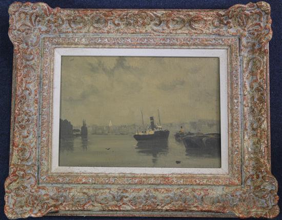 Lot 1164 , Attributed to Charles Cundall Evening on the Pool, 8 x 11.5in.
