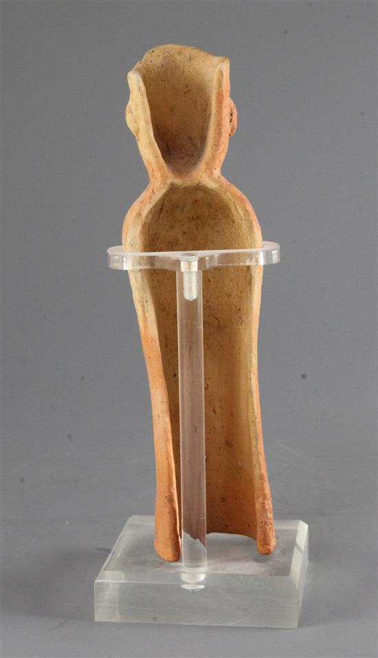 A Chinese red pottery figure of a man holding an animal, probably Song dynasty, 25cm