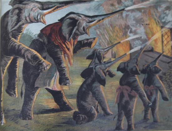Parker, B - Lays of The Grays, oblong quarto, original pictorial boards, with 12 full page chromolitho's of elephants at home and play, London [1909]