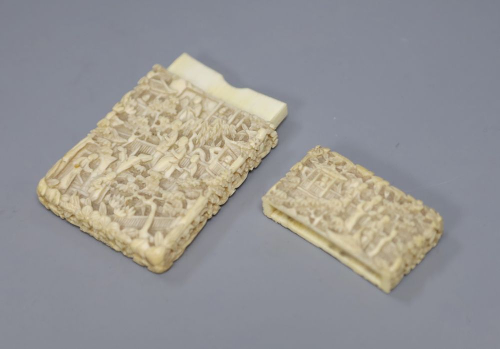 A 19th century Cantonese carved ivory card case, 8 x 4cm