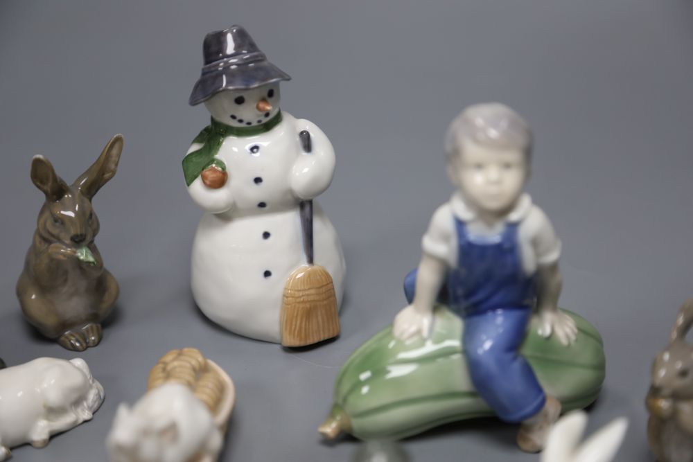 A collection of Royal Copenhagen including mice, chickens, rabbits, a snowman and a dish