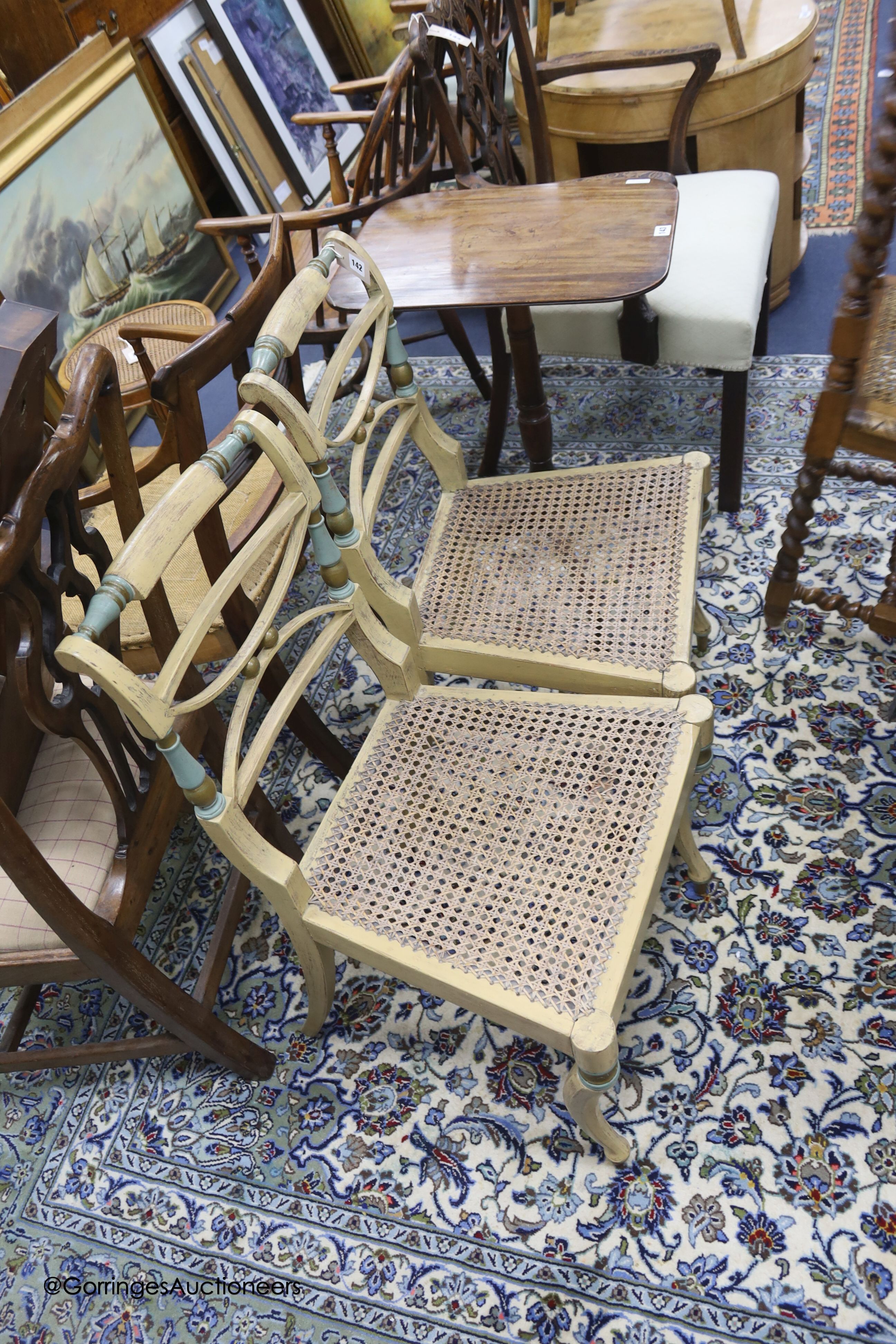 A pair of early 19th century part painted beech single chairs, with cane seats