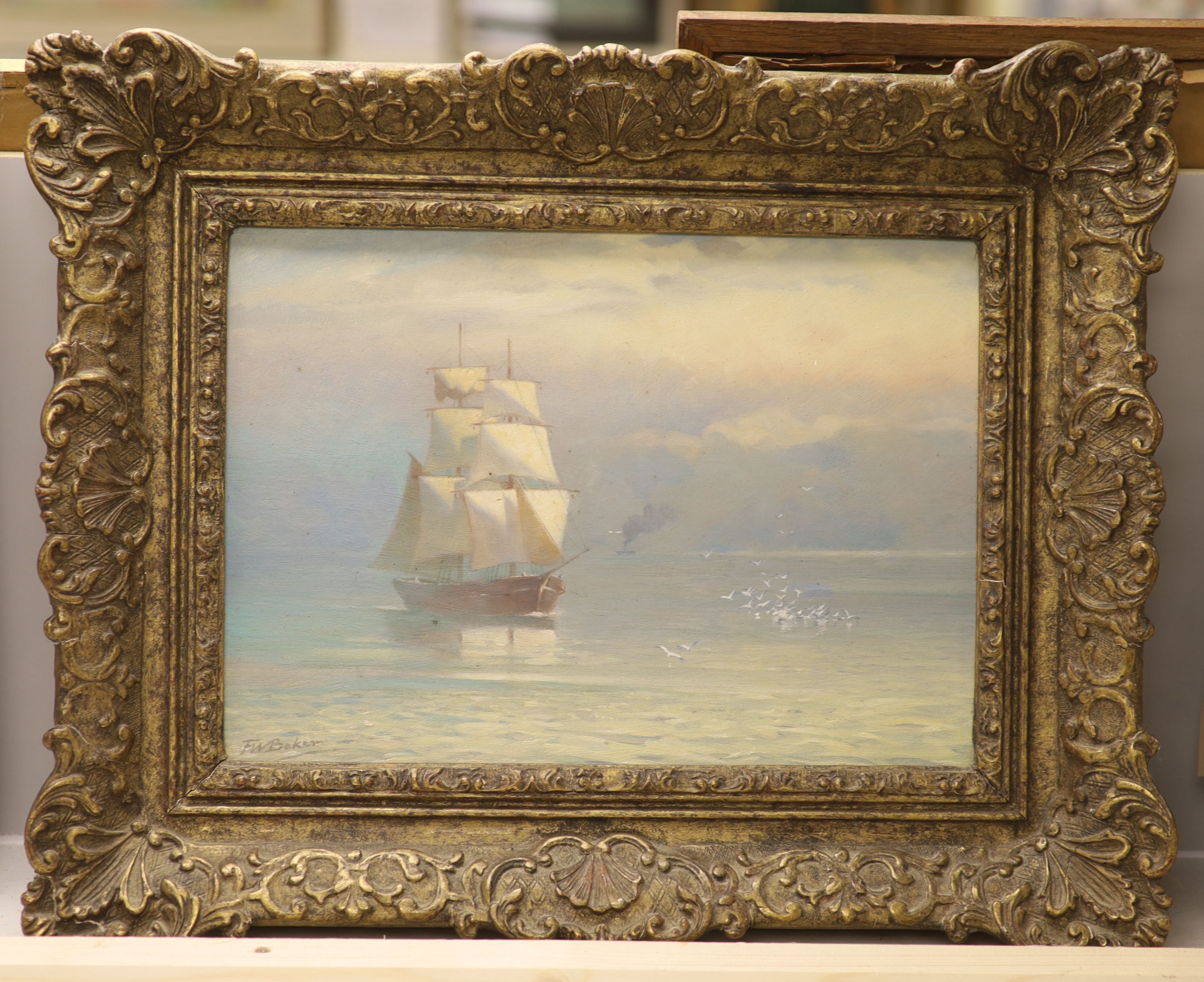 Frederick W. Baker (1862-1936), oil on board, sailing boat on a calm sea.