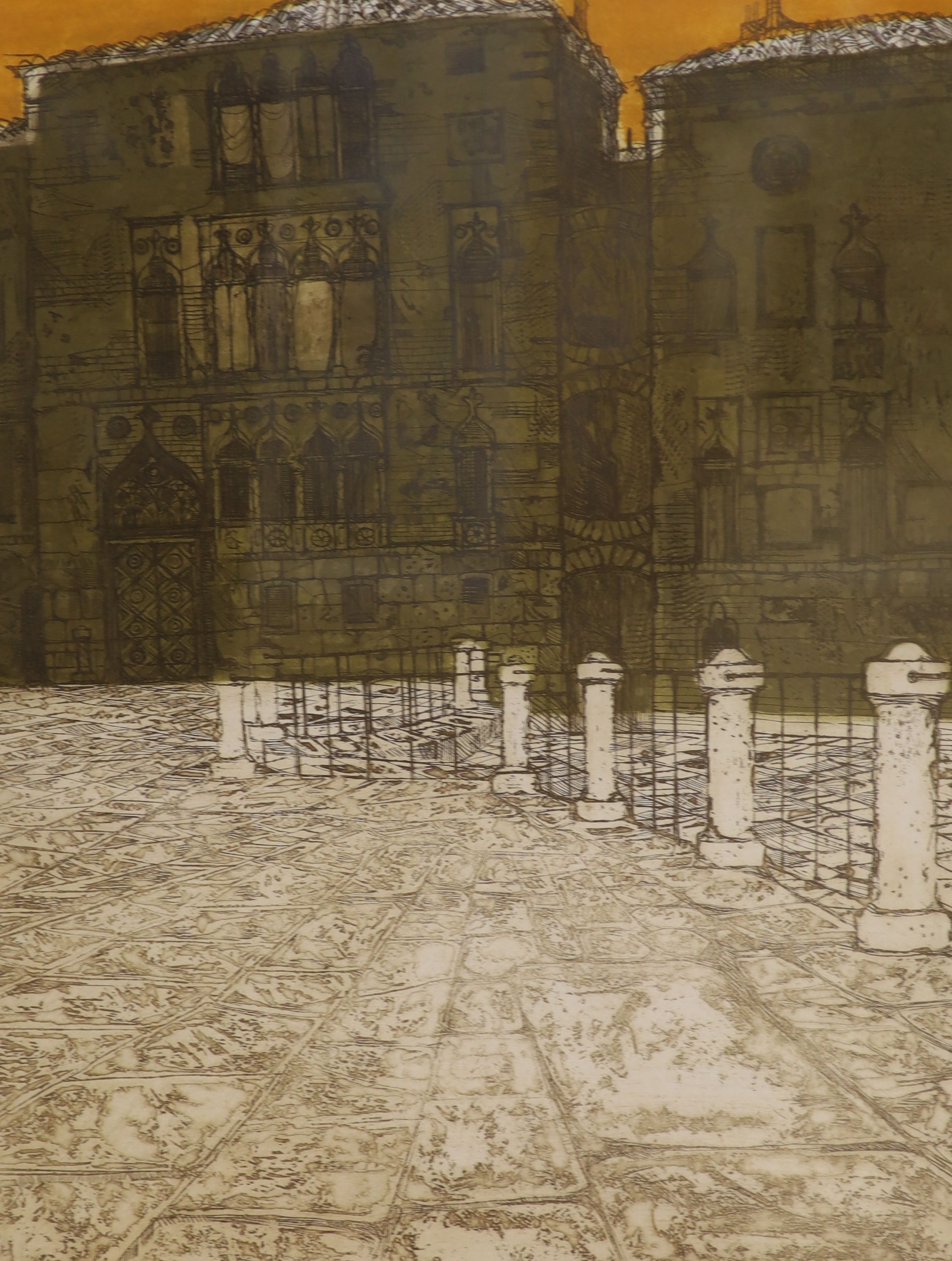 Lot 657 , Richard Beer (1928-2017), two coloured etchings, Campo, 1/100 and Castel Sardo, 28/100, signed in pencil, 65 x 45cm, frames differ