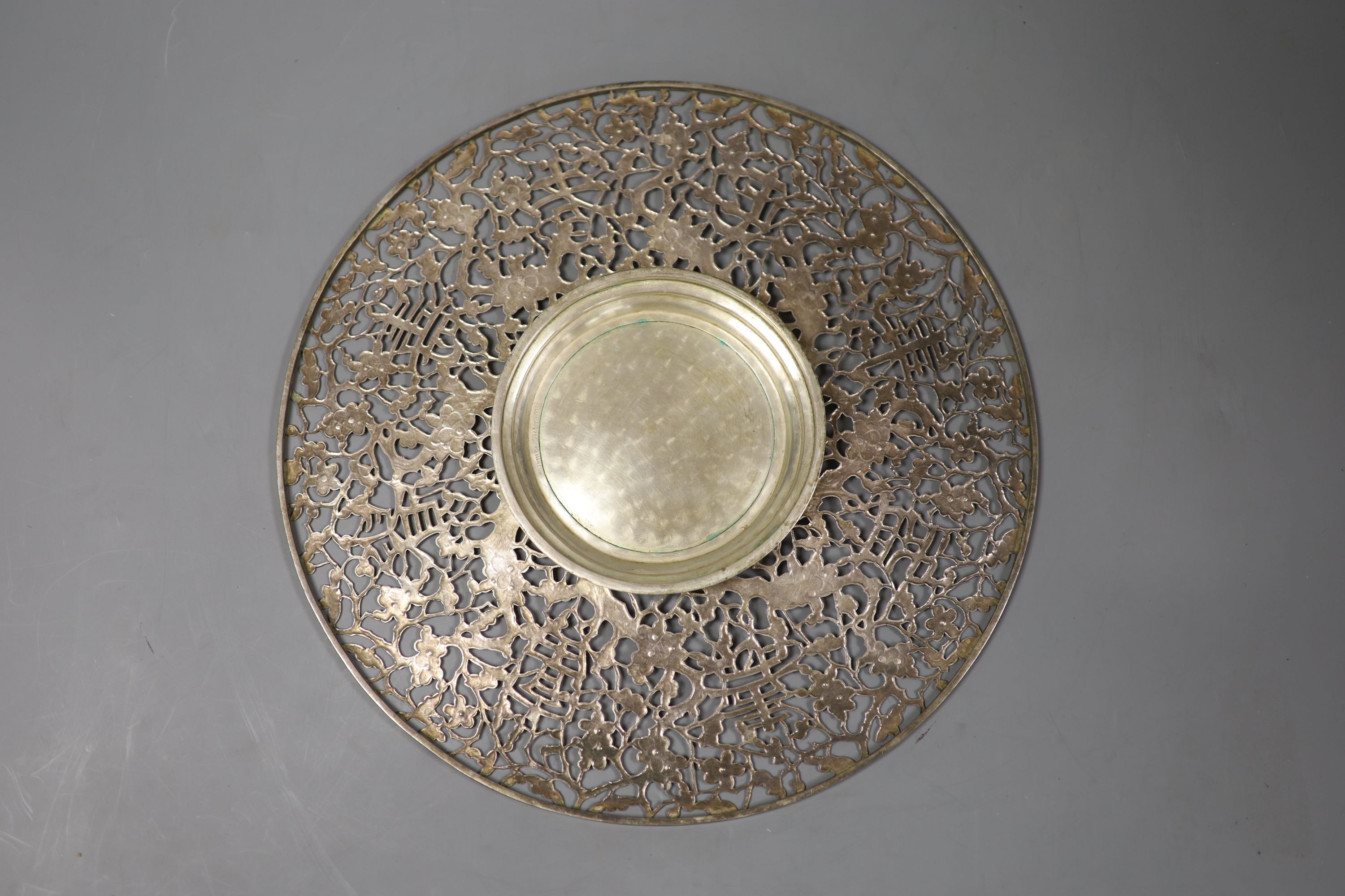 A Chinese Tiensin Yeching pierced sterling shallow platter,