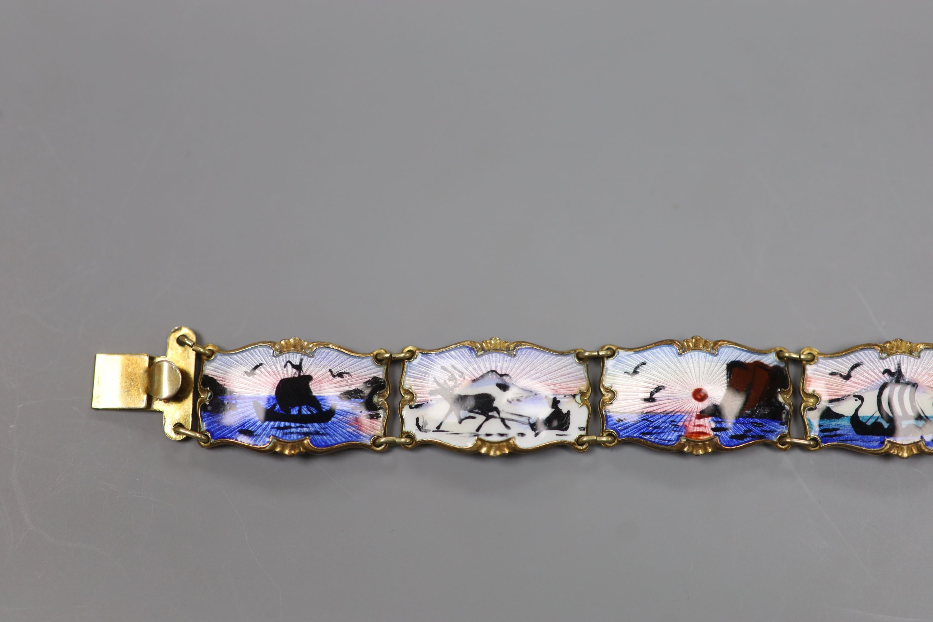 A 20th century Norwegian 830S and polychrome enamel panel set bracelet, 18.5cm,