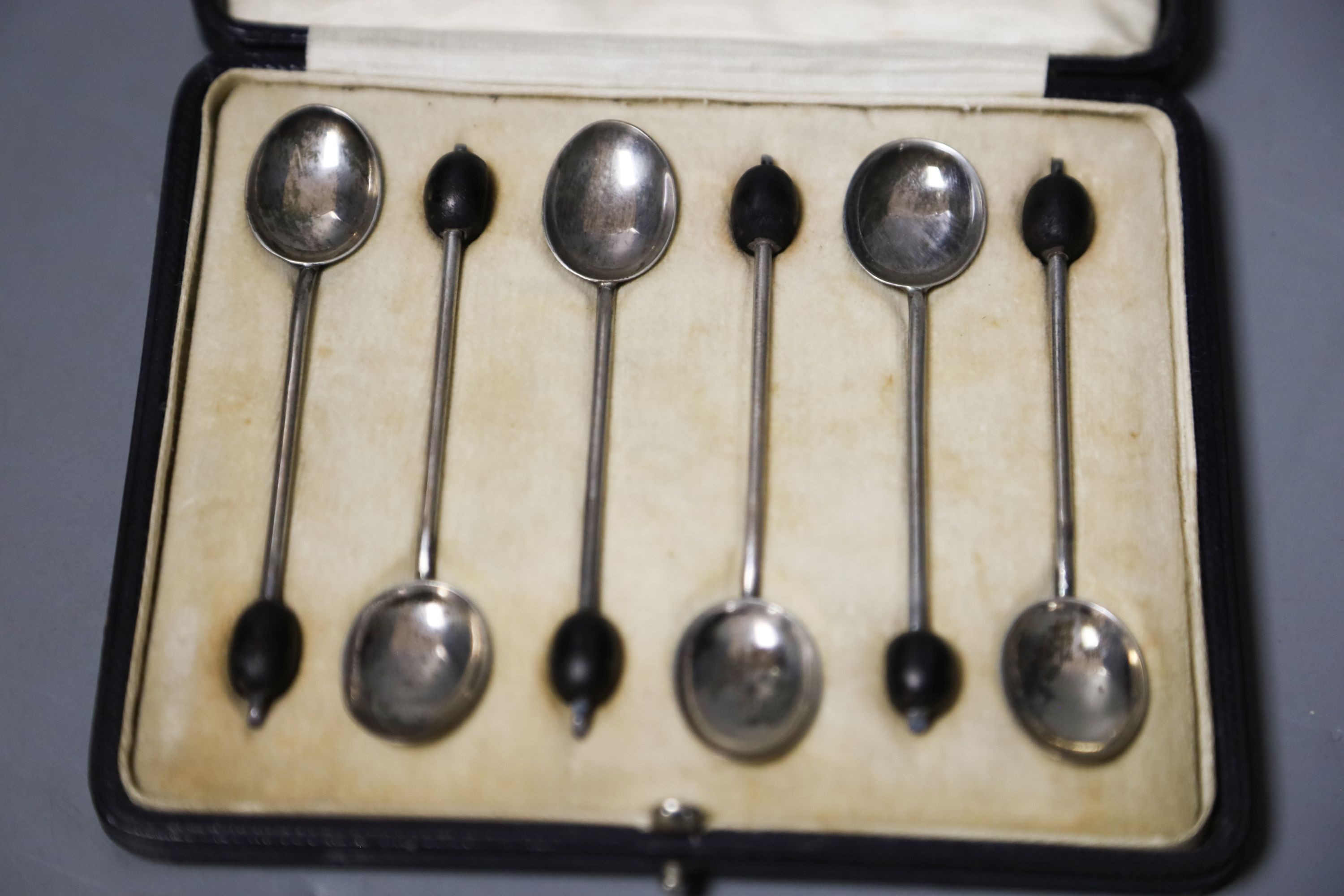 Lot 1839 , A cased set of six George V silver bean end coffee spoons