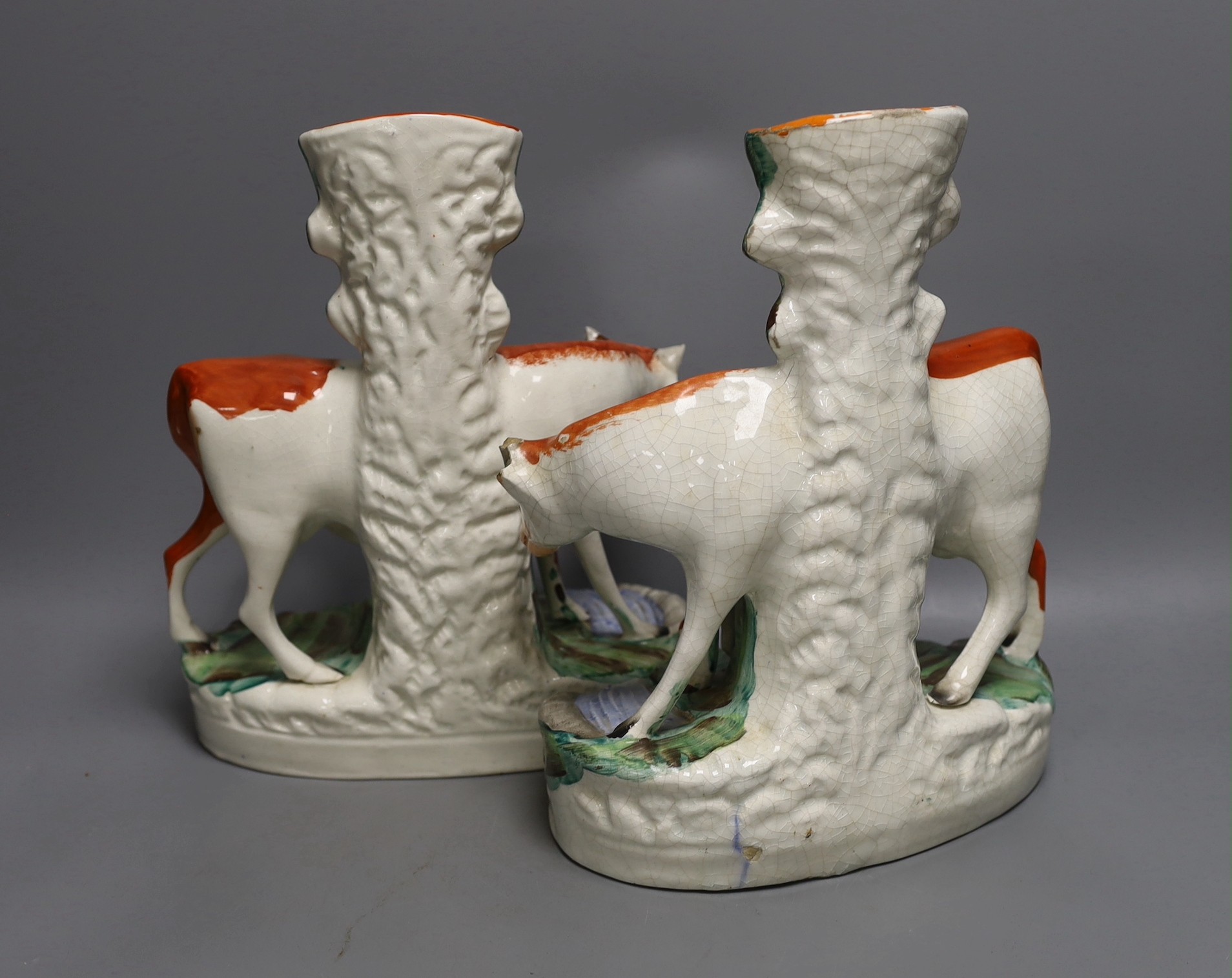 A pair of large Mid 19th century Staffordshire ‘cow and calf’ spill vases, 29cm