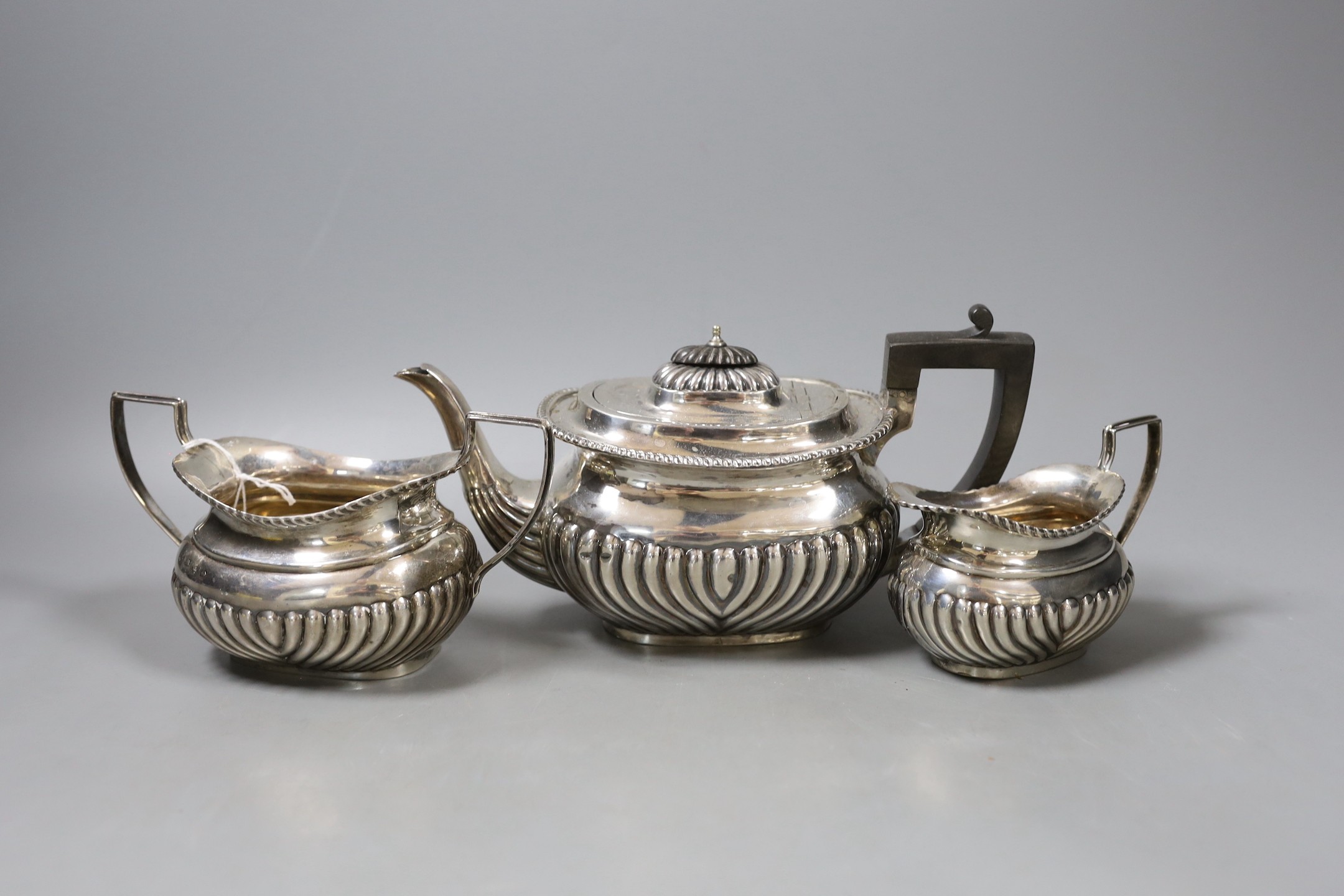 A matched late Victorian demi-fluted silver three piece tea set, Birmingham, 1896/7,