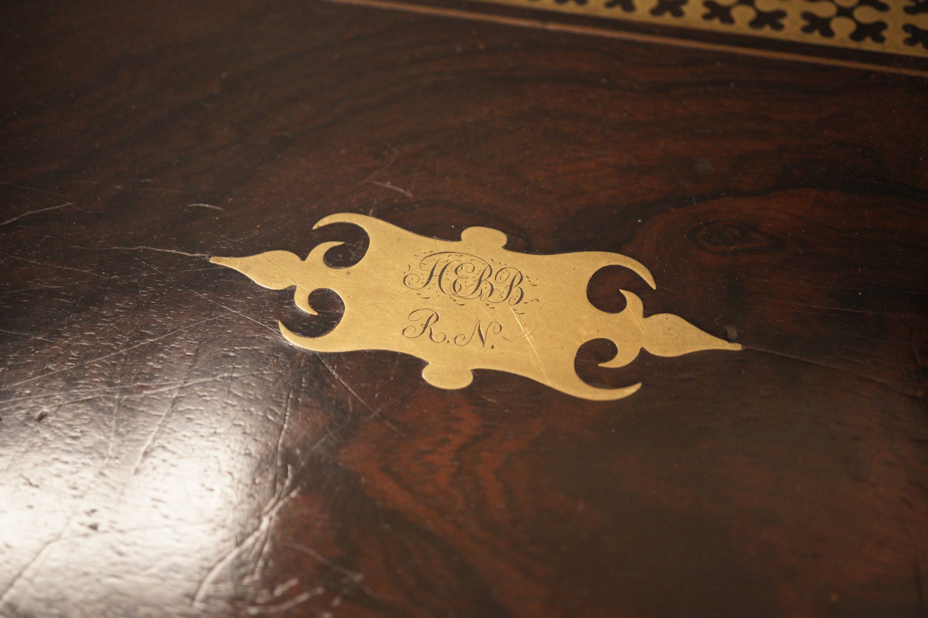 Lot 1377 , A George IV cut brass banded rosewood writing box, 35cm