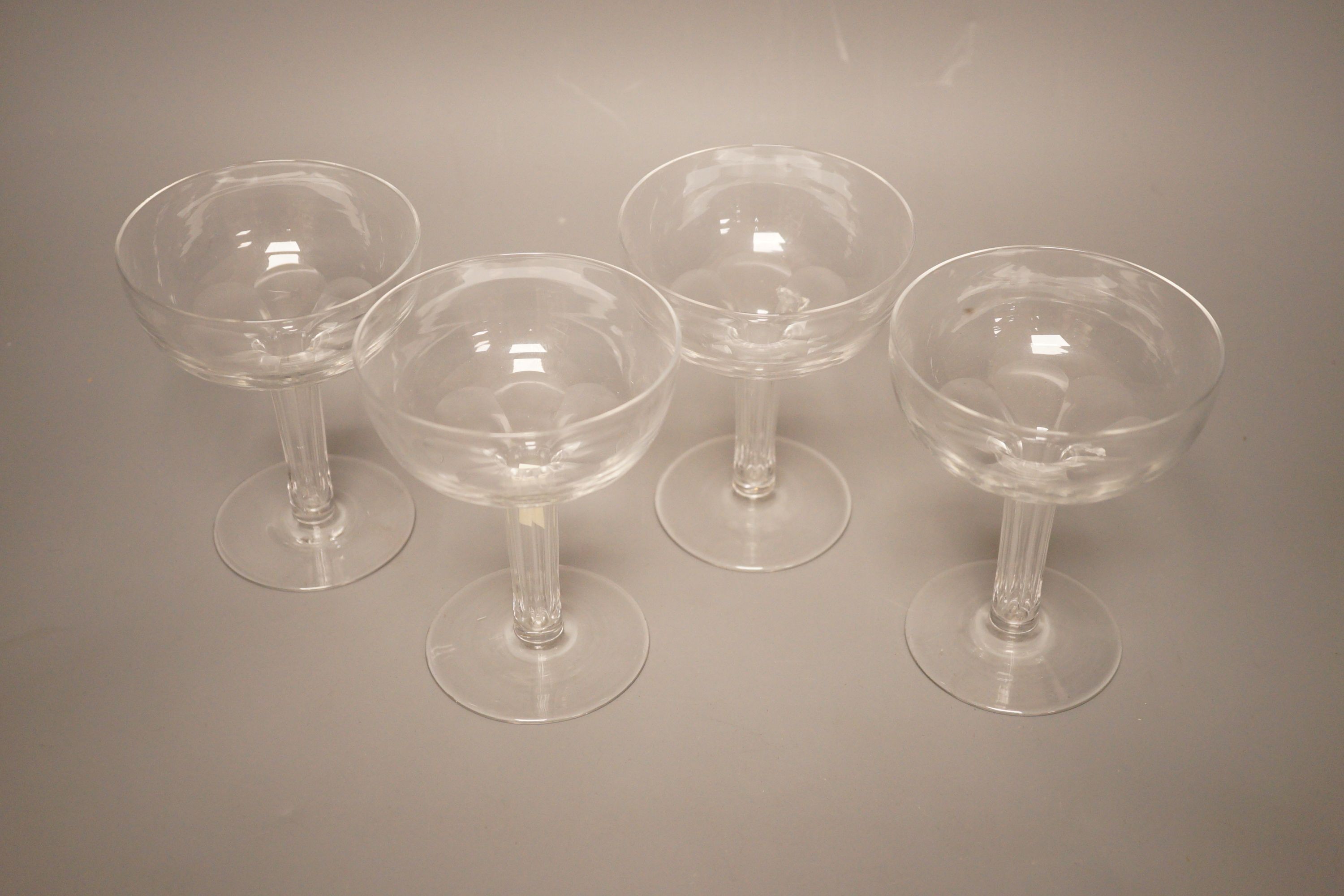 Lot 1254 , A set of four facet cut hollow stemmed champagne glasses