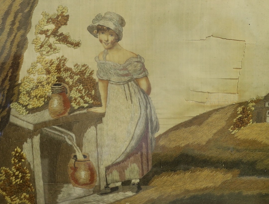 A framed Regency woolwork and silk picture, 33x42cm