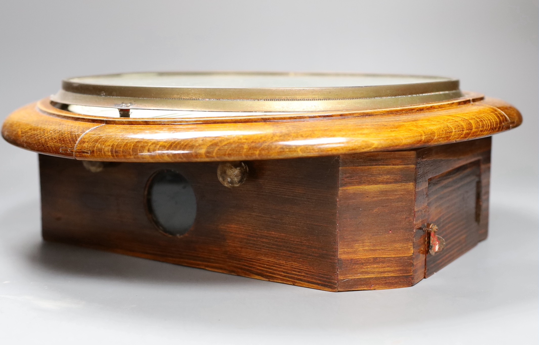 A late Victorian beech framed eight day circular dial wall timepiece, 39cm diameter
