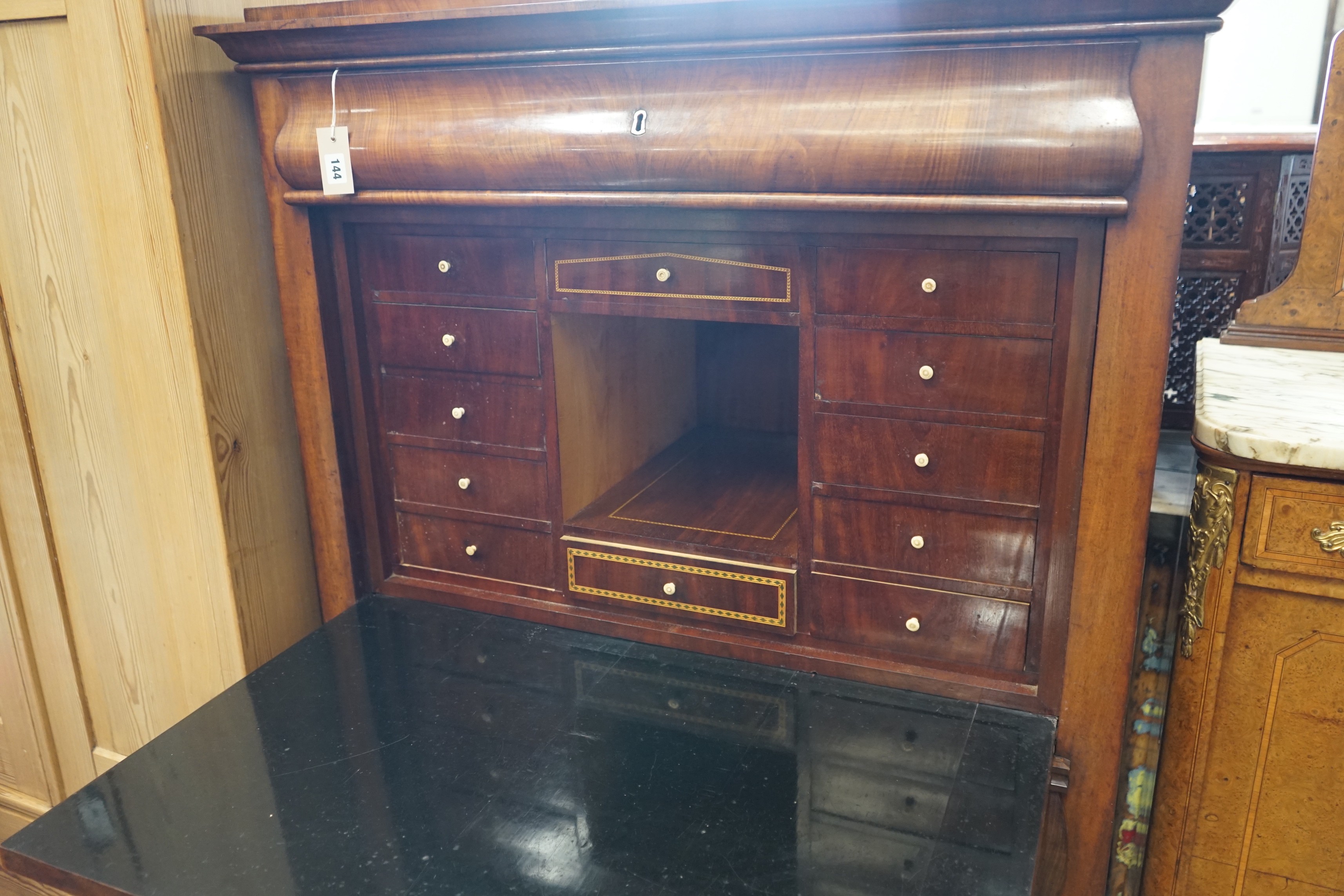 Lot 144 , A 19th century French mahogany secretaire a abbatant, width 104cm, depth 55cm, height 148cm