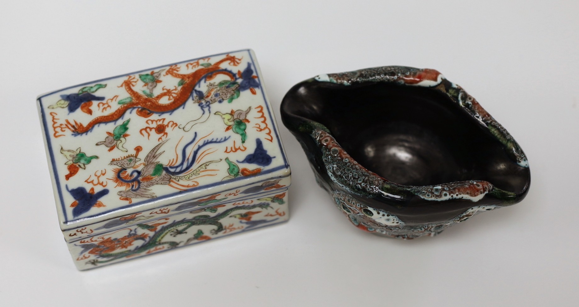 Lot 1461 , A Chinese wucai box and a Japanese pottery vase, 10.5cms wide x 6cms high