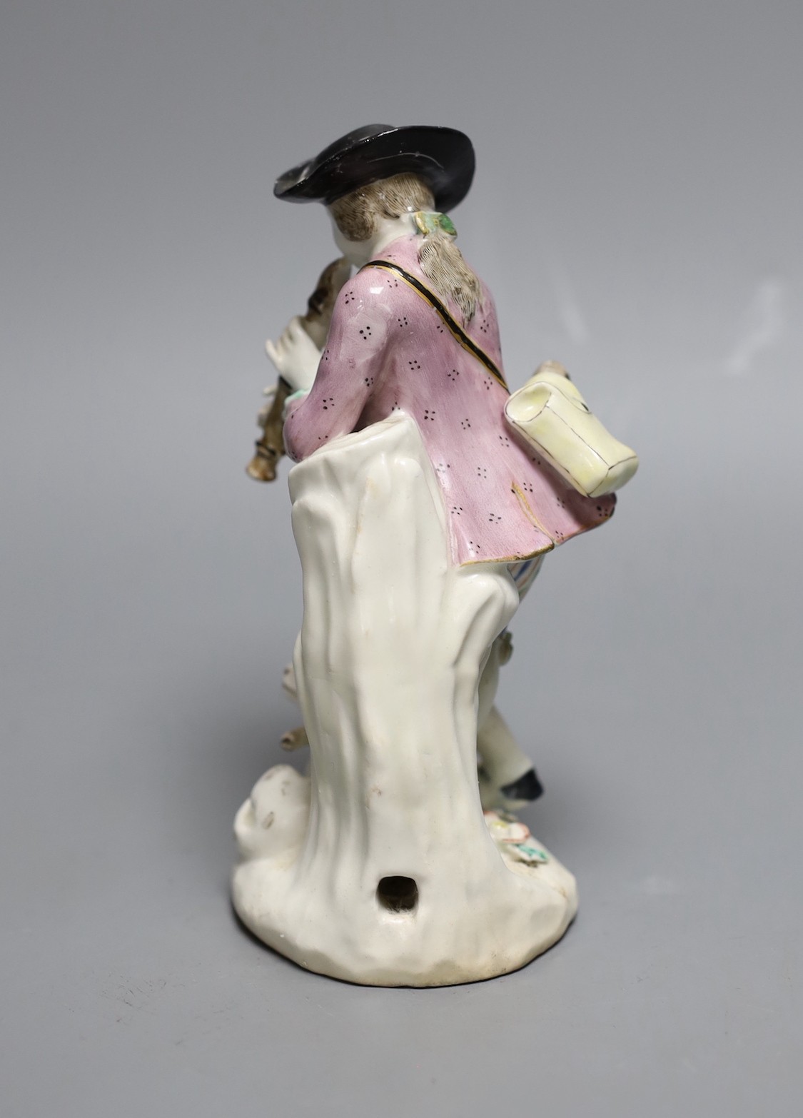 A Bow figure of a boy with dog playing the pipes, 25.5 cms high